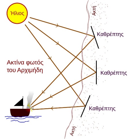 · “Καύσις δια κατόπτρων” (επ΄ αυτού έγινε επιτυχές πείραμα στο Ν.Σ.)