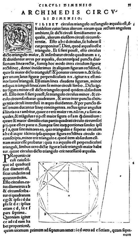 Ενώ συχνά θεωρείται ως σχεδιαστής μηχανικών συσκευών, ο Αρχιμήδης έκανε επίσης συνεισφορές στον τομέα των μαθηματικών. Ο Πλούταρχος έγραψε: “Αφιέρωσε όλη του τη στοργή και τη φιλοδοξία του σ’ αυτές τις καθαρότερες εικασίες όπου δεν μπορεί να γίνει αναφορά στις χυδαίες ανάγκες της ζωής“. Ο Αρχιμήδης χρησιμοποίησε το πυθαγόρειο θεώρημα για να υπολογίσει τη πλευρά του 12γωνου απ’ αυτή του 6γώνου και για κάθε επακόλουθο 2πλασιασμό των πλευρών του κανονικού πολυγώνου.