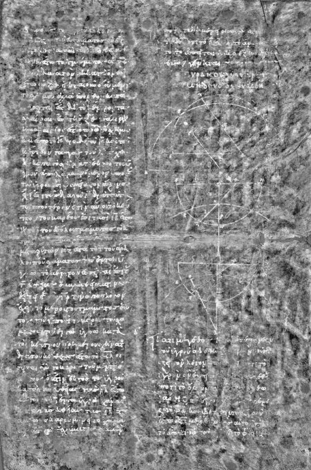Το παλίμψηστο λοιπόν αυτό είναι περγαμηνός κώδικας του 10ου αι., που περιέχει μαθηματικές πραγματείες. Το 1229 ο κώδικας υπέστη επεξεργασία, η γραφή σβήστηκε, τα φύλλα του αναδιατάχθηκαν, διπλώθηκανε στη μέση έτσι ώστε ένα παλιό φύλλο να αποτελέσει δύο ενός καινούργιου κώδικα και πάνω τους γραφτήκανε λειτουργικά κείμενα. Η απόξεση δεν ήταν ολοκληρωτική, με αποτέλεσμα υπό ευνοϊκές συνθήκες να διαφαίνεται το προηγούμενο κείμενο.