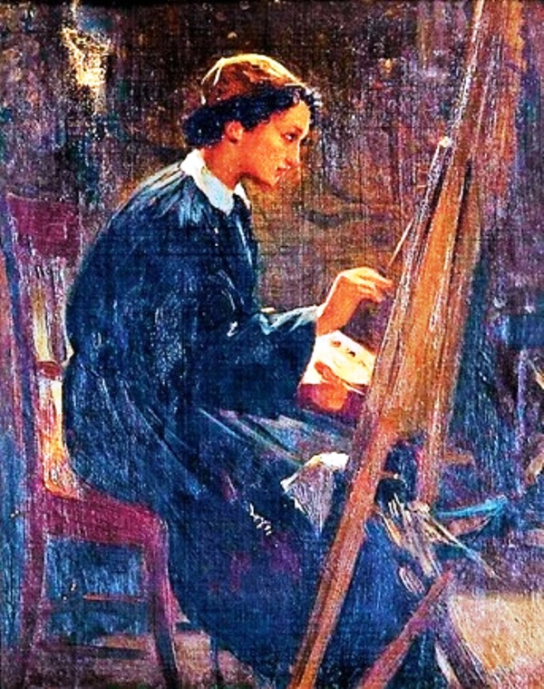 Δεν είναι απλά η 1η Ελληνίδα ζωγράφος, αλλά η 1η γυναίκα που κατόρθωσε να μπει στο ανδρικό άβατο της Καλλιτεχνικής Ακαδημίας της Ρώμης και της Νάπολι. Μπαίνει μεταμφιεσμένη σε “νεαρό Έλληνα“. Αριστεύει κι αποσπά τον θαυμασμό συμμαθητών και καθηγητών. Σε μια εκδήλωση για την εθνική μας γιορτή στην Ιταλία, αποκαλύπτει άθελα της τη πραγματικότητα. Πάνω στον ενθουσιασμό φιλά μιαν Ελληνίδα που απήγγειλε με ωραία φωνή ένα ποίημα του Ρήγα. (Τα επαναστατικά γεγονότα ήταν εντελώς πρόσφατα). Ξεσπά σκάνδαλο κι απειλείται… εμφύλια σύρραξη. Έτσι αναγκάστηκε ν’ αποκαλύψει τη ταυτότητα της και βέβαια ο θαυμασμός γι’ αυτή γίνεται μεγαλύτερος.