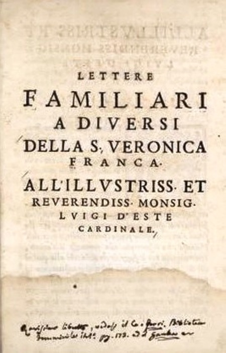 Οι 50 γνωστές επιστολές της δημοσιεύθηκαν το 1580 στη Βενετία κι ήταν αφιερωμένες στον Καρδινάλιο Luigi d’ Este. Η 1η γράφεται στον Henry III, βασιλιά της Γαλλίας κι η 21η στον Jacopo Tintoretto, τον Ενετό ζωγράφο, ευχαριστώντας τον για το πορτραίτο που της έκανε. Τέτοια γράμματα ήτανε κάτι συνηθισμένοι για τους αναγεννησιακούς ανθρωπιστές, που βλέπανε την επιστολή σαν ευκαιρία να επιδείξουνε τις λογοτεχνικές τους δεξιότητες, -εκτός βέβαια από μέσο για τη μετάδοση πληροφοριών. Οι περισσότεροι λογοτέχνες που γράψαν επιστολές στη τη διάρκεια αυτής της περιόδου φυσικά ξέρανε πως δε θα παραμείνουν ιδιωτικές και δίναν μεγάλη προσοχή στη κατάρτισή τους. Οι επιστολές συχνά παραδίδονταν σε λογοτεχνικές συγκεντρώσεις ή διαβάζονταν δυνατά, με αναγνώστες ή ακροατές να σχολιάζουν το στυλ και τις δεξιότητές τους. Στη πραγματικότητα λοιπόν οι επιστελές αυτές δεν φτάσανε ποτέ στους παραλήπτες τους, παρά διαβάστηκαν σε συγκεντρώσεις και δημοσιεύτηκαν όπως ήταν ο αρχικός τους προορισμός ώστε να περιγραφεί η ζωή κι οι δραστηριότητες της ποιήτριας.