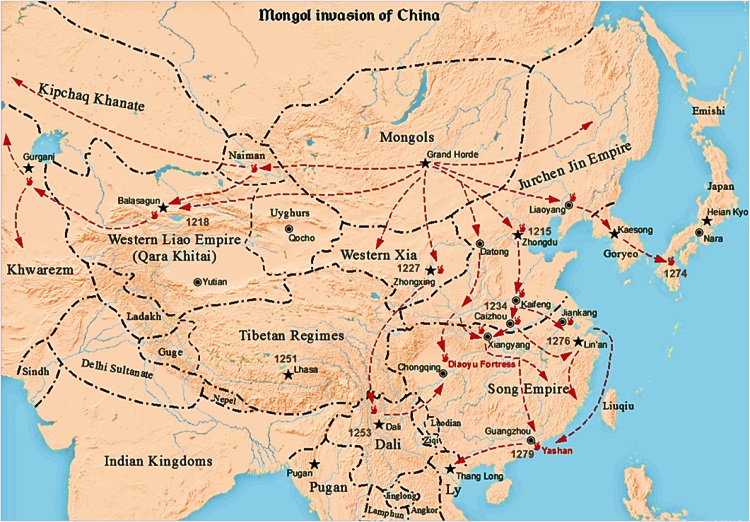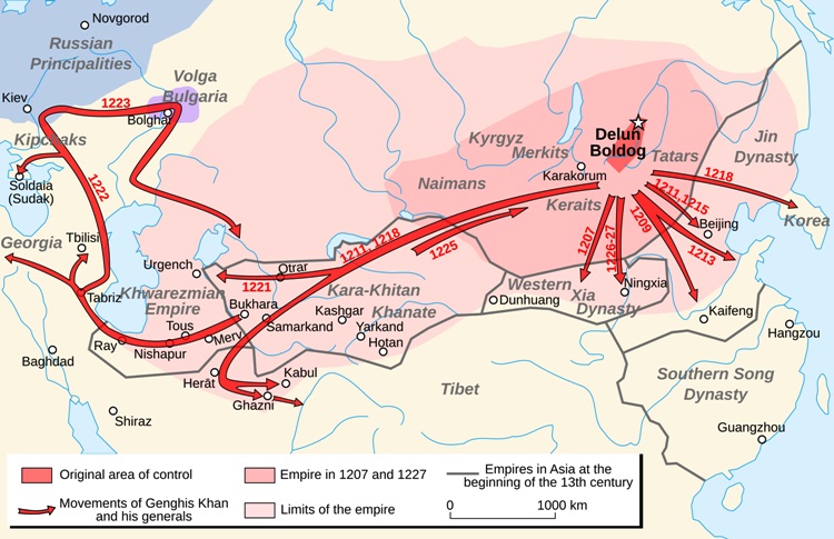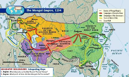 Εδώ φαίνεται η επέκταση της Μογγολικής Αυτοκρατορίας, από το 1207 που ανέλαβε “Γενικός Χάν” (Τζίνγκις Χαν), ο Τεμουτζίν, ως τη χρονιά του θανάτου του Κουμπιλάι Χαν, το 1294.