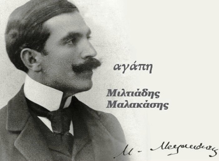 O Μιλτιάδης Μαλακάσης (του Αγαμέμνονα και Ζωής Κερασοβίτη) ποιητής απ’ τους σημαντικούς του νεοελληνικού λυρισμού, γεννήθηκε στο Μεσολόγγι το 1869. Λάτρευε με πάθος τον ιερό αυτόν τόπο. Καταγόταν από οικογένεια αγωνιστών του ‘21, πλούσια κι άνετη κι αυτό του ‘χεν εξασφαλίσει ζωή αφιερωμένη στη τέχνη κι απαλλαγμένη βιοποριστικών εγνοιών. Οι πρόγονοί του (Μαλακάσας ήτανε τ’ όνομά του, που το άλλαξε όταν έφτασε Αθήνα) κατεβήκαν απ’ τη Πίνδο, πολλά χρόνια πριν απ’ την Επανάσταση. Ασχοληθήκαν όλοι με το ξεσηκωμό του έθνους κι ο παππούς Χαράλαμπος, υπήρξεν άνθρωπος του Αλέξανδρου Μαυροκορδάτου, που πίστευε κι εκτιμούσε. Ήτανε πολιτάρχης και πυροβολητής στη διάρκεια της πολιορκίας του Μεσολογγίου. Ο πατέρας του ήτανε στρατιωτικός και μετά τον αγώνα, αφοσιώθηκε στη καλλιέργεια των κτημάτων του, στο Γαλατά Μεσολογγίου.