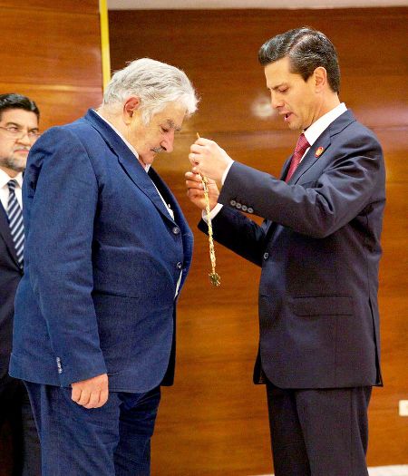 Στη διάρκεια μιας ομιλίας στην 28η Διεθνή Έκθεση Βιβλίου της Γκουανταλαχάρα στο Μεξικό στις 7 Δεκεμβρίου 2014, ο Mujica πήρε συνέντευξη από τον Μεξικανό δημοσιογράφο Ricardo Rocha. Ασχολήθηκε με διάφορα θέματα, όπως η διακίνηση ναρκωτικών, η νομιμοποίηση των ναρκωτικών, η φτώχεια και η κοινωνική αδικία: “Ζούμε στην πιο άδικη ήπειρο στον κόσμο, ίσως την πλουσιότερη, αλλά με τη χειρότερη κατανομή [του πλούτου]”. Σχετικά με τη Λατινική Αμερική, ο Mujica δήλωσε ότι ήταν “παθιασμένος με το να φέρει κοντά τους Λατινοαμερικανούς, για το τι μας ορίζει ότι ανήκουμε σε ένα μεγάλο έθνος που πρόκειται να δημιουργηθεί. Υπάρχουν πολυεθνικά κράτη, όπως η Κίνα, όπως η Ινδία, όπως αυτό που κάνει η Ευρώπη μετά από μια ιστορία πολέμων”. Ο Mujica έθιξε επίσης το ζήτημα της κοινής γλωσσικής κληρονομιάς των Λατινοαμερικανών, παρατηρώντας σε σχέση με τις δύο κύριες γλώσσες της περιοχής ότι “τα πορτογαλικά είναι γλυκά ισπανικά, αν τα μιλάς αργά… και ακόμη περισσότερο αν έχει θηλυκή γλυκύτητα”. Και επεσήμανε ένα άλλο στοιχείο που ενώνει τις χώρες της Λατινικής Αμερικής: “Έχουμε μια άλλη ταυτότητα: τη χριστιανική και καθολική παράδοση”. Ολοκλήρωσε την ομιλία του προσθέτοντας: “Βλέπω ότι υπάρχουν πολλοί νέοι εδώ. Ως γέρος, μια μικρή συμβουλή: Η ζωή μπορεί να μας βάλει πολλές παγίδες, πολλά χτυπήματα, μπορούμε να αποτύχουμε χίλιες φορές, στη ζωή, στον έρωτα, στον κοινωνικό αγώνα, αλλά, αν το ψάξουμε, θα έχουμε τη δύναμη να σηκωθούμε ξανά και να ξεκινήσουμε από την αρχή. Το πιο όμορφο πράγμα για την ημέρα είναι ότι ξημερώνει. Υπάρχει πάντα μια αυγή αφού περάσει η νύχτα. Μην το ξεχνάτε, παιδιά. Οι μόνοι χαμένοι είναι αυτοί που σταματούν να αγωνίζονται”.
