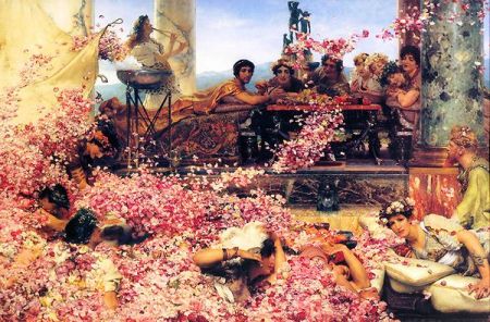 Αλλά τους ξεπέρασε όλους με την άσχημη καταστροφή των τριαντάφυλλων, ο αυτοκράτορας Hλιογάβαλος. Σε μια από τις φιέστες του, οι επισκέπτες κατακλύστηκαν με τόσα πεσμένα ροδοπέταλα σε σημείο που μερικοί από αυτούς, για μεγάλη του ευχαρίστηση, ασφυκτιούσαν κάτω από αυτά. Σύμφωνα με το μύθο, ο Ηλιογάβαλος αποφάσισε ν’ απαλλαγεί από τους συνεργάτες του, επειδή τους υποψιάστηκε για απιστία.