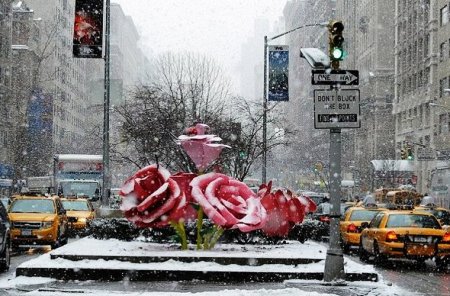 Στους δρόμους της Νέας Υόρκης, έχουνε στηθεί 38 τεράστια τριαντάφυλλα. Τα στελέχη και τα φύλλα των λουλουδιών είναι χάλυβας και τα μπουμπούκια είναι φτιαγμένα από υαλοβάμβακα. Τα μεγαλύτερα τριαντάφυλλα είναι ύψους 7 μέτρων.
