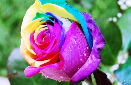 Τα τριαντάφυλλα Rainbow (Rainbow Roses), χρωματισμένα με όλα τα χρώματα του ουράνιου τόξου, είναι ένα θαύμα που εκπλήσσει τη φαντασία. Κάθε πέταλο σ’ έν άνθος έχει το δικό του μοναδικό χρώμα. Η εμφάνιση ενός τέτοιου ασυνήθιστου χρώματος επιτυγχάνεται με το χρωματισμό του λουλουδιού μέσω του στελέχους. Στο επιλεγμένο λουλούδι, το στέλεχος χωρίζεται και τοποθετείται σε διάλυμα με ειδικές βαφές. Καθώς το νερό απορροφάται, τα ροδοπέταλα μετατρέπονται σε ασυνήθιστα χρώματα. Τώρα μπορεί κανείς να βρει τουλίπες ουράνιο τόξο, κρίνους, ζέρμπερες, κλπ. Το κόστος ενός ρόδου ουράνιο τόξο φτάνει τα 20$ -το πιο ακριβό!