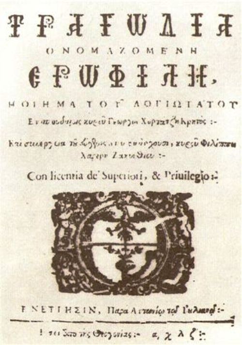 Πρέπει να γράφτηκε περίπου το 1595 (αφού αναφέρεται στην επιδημία πανούκλας που έπληξε τη Κρήτη ανάμεσα στα 1592-5) κι εκδόθηκε πρώτη φορά το 1637 στη Βενετία. Το έργο αφιερώνεται στο δικηγόρο Ιωάννη Μούρμουρη, δικηγόρο από τα Χανιά. Είναι γραμμένη σε 15σύλλαβο ομοιοκατάληκτο στίχο, με εξαίρεση τα χορικά, που είναι γραμμένα σ’ 11σύλλαβους σε τερτσίνες (τρίστιχες στροφές).