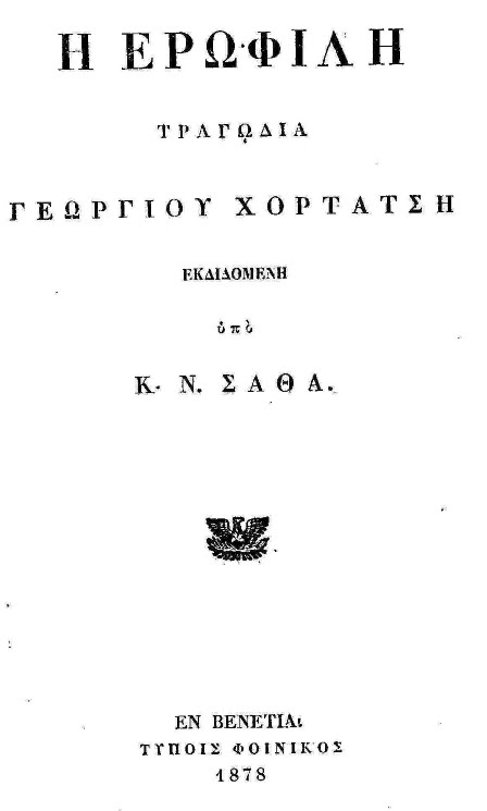 Επειδή δεν έχω -ακόμα τουλάχιστον- όλο το έργο, θα κάνω μιαν όσο πιο καλή παρουσίασή του και με λίγα αποσπάσματα, κι υπόσχομαι πως κάποια στιγμή θα μπει ολάκερο. Ξεκινώ λοιπόν με την Ερωφίλη.