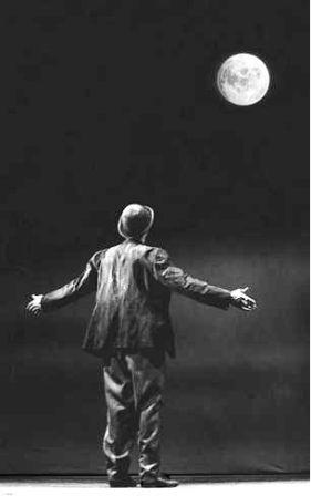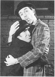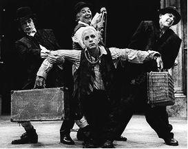 (βγαίνουν κι ο Βλαντ τους ακολουθεί ως την άκρη της σκηνής. ο θόρυβος της πτώσης, δυναμωμένος από τη μίμησή του, δείχνει πως είναι πάλι κάτω. σιγή. ο Βλαντ πάει προς τον Εστρ, τον εξετάζει μια στιγμή, μετά τονε κουνά να ξυπνήσει).