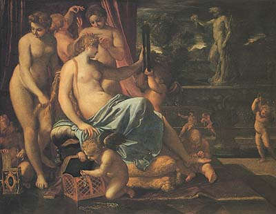 Ο Ανιμπάλε Καράτσι (Annibale Carracci), ήταν Ιταλός ζωγράφος, ο πλέον εκτιμώμενος ζωγράφος στην εποχή του κι ήταν η κινητήρια δύναμη για τη δημιουργία του μπαρόκ. Μαζί με το ξάδελφό του Λουντοβίκο και τον μεγαλύτερο αδελφό του Αγκοστίνο -έκαστος υπήρξε σημαντικός καλλιτέχνης- εκκίνησε το μετασχηματισμό της ιταλικής ζωγραφικής: Απέρριψαν το προσποιητό στη μανιεριστική ζωγραφική, προτάσσοντας την επιστροφή στη φύση συζευγμένη με τη μελέτη μεγάλων Ιταλών δημιουργών της Αναγέννησης κι ειδικότερα του Τιτσιάνο, του Βερονέζε και του Κορέτζιο.