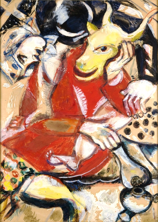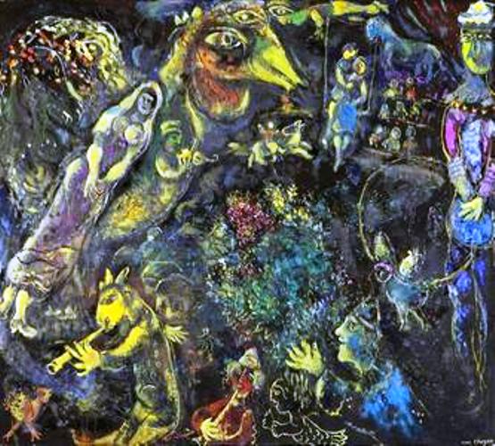 Ο Μαρκ Σαγκάλ (Marc Chagall, 1887-1985, Classic Modern Art) ήταν από τα μεγαλύτερα ταλέντα του 20ου αι., κράτησε απόσταση, απ’ όλα τα ρεύματα της εποχής, καλλιεργώντας προσωπικό στυλ, που συνδυάζει το παλιό με το νέο, τη φαντασία με τη πραγματικότητα. Ταπεινής καταγωγής, Ρωσοεβραίος, έζησε το μεγαλύτερο μέρος της ζωής του στη Γαλλία. Το έργο του επηρεάστηκε από την ευλάβεια και τη θρησκευτικότητα του οικογενειακού του περιβάλλοντος και συχνά διαθέτει αυτοβιογραφικό χαρακτήρα, ωστόσο, ποτέ δεν αγνόησε τα μεγάλα διαχρονικά θέματα, Έρως & Θάνατος, που τα πραγματεύτηκε με μοναδικό πάθος, κερδίζοντας την αποδοχή του κοινού. Κυκλοθυμικός μα διακρίθηκε και σ’ άλλα πεδία, όπως βιτρώ, εικονογραφήσεις βιβλίων και σκηνογραφία. Ανέλαβε παραγγελίες απ’ όλο το κόσμο και θεωρείται, από τους γίγαντες της Μοντέρνας Τέχνης.