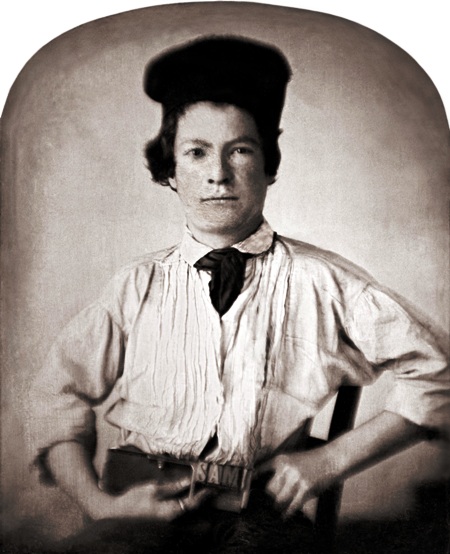 Επιτέλους, ένα βράδι, έτρεξα βιαστικά στην καλύβα του, γιατί είχα μάθει ότι αυτή τη φορά η κατάστασή του ήταν τέτοια, που ακόμα κι οι πιο σχολαστικοί την έβρισκαν άψογη -ήταν ήρεμα, γαλήνια, συμμετρικά μεθυσμένος- ούτε ένας λόξιγκας δεν έσπαγε τη φωνή του, ούτε ένα σύννεφο στο μυαλό του δε σκοτείνιαζε τη μνήμη του. Μπαίνοντας τον είδα να κάθεται πάνω σ’ ένα άδειο βαρέλι από μπαρούτι, μ’ ένα πήλινο τσιμπούκι στο ένα χέρι και το άλλο σηκωμένο για να επιβάλει την ησυχία. Το πρόσωπό του ήταν κόκκινο, ολοστρόγγυλο και πολύ σοβαρό. Ο λαιμός του ήταν γυμνός και τα μαλλιά του ανάκατα. Στην εμφάνιση και την αμφίεση ήταν ένας αντιπροσωπευτικός τύπος χρυσοθήρα τής εποχής. Πάνω στο τραπέζι ήταν στημένο ένα κερί και στο θαμπό του φως ξεχώρισα «τα παιδιά» καθισμένα εδώ κι εκεί σε ράντζα, κιβώτια, βαρέλια από μπαρούτι κλπ.