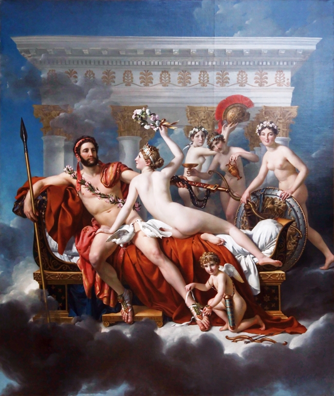 Ο Λουί-Ζακ Νταβίντ (Jacques-Louis David, 1748-1825, NeoClassicism), υπήρξεν επίσημος ζωγράφος του Ναπολέοντα κι έτσι όταν αυτός έπεσε, καταδικάστηκε σε θάνατο και σώθηκε χάρη στη πρώην σύζυγό του, Σαρλότ. Ξεκίνησε ακολουθώντας το Ροκοκό, μα στη πορεία εστράφη προς τον Νεοκλασσικισμό, επηρεασμένος από τη κλασσική Ιταλική τέχνη κι έγινε μάλιστα ένθερμος υπέρμαχος του. Η φήμη ήτανε μεγάλη κι ως καλλιτέχνη αλλά κι ως δασκάλου, μιας κι από το εργαστήρι του πέρασαν αρκετοί μετέπειτα μεγάλοι καλλιτέχνες, μεταξύ των οποίων κι ο Ενγκρ. Η επιρροή της τεχνικής του στην Ευρώπη, έφτασε μέχρι τις απαρχές του Ιμπρεσσιονισμού. Γεννήθηκε στο Παρίσι, στις 30 Αυγούστου 1748, γιος χονδρέμπορου σιδήρου κι αρχιτεκτόνισσας. Στα 10 του χάνει το πατέρα του από μονομαχία κι αναλαμβάνουνε 2 θείοι του, ο Φρανσουά Μπαρόν κι ο Ζαν-Φρανσουά Ντεμεζόν, αρχιτέκτονες, να συνδράμουνε στην ανατροφή του. Παίρνει τη βασική του εκπαίδευση στο Κολλέγιο Των 4 Εθνών.