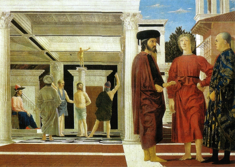 Ο Πιέρο Ντέλλα Φραντσέσκα (Piero Della Francesca, 1416-1492, Early Renaissance), (γνωστός στους συγχρόνους του ως Πιέρο ντι Μπενεντέτο ντε’ Φραντσέσκι, Piero di Benedetto de’ Franceschi) υπήρξε από τους μεγαλύτερους Ιταλούς ζωγράφους του 15ου αι. αλλά και λαμπρός μαθηματικός κι οι πίνακές του εμφανίζουνε γεωμετρική σαφήνεια, που συνδυάζεται με τα διαυγή λαμπερά χρώματα. Παρ’ ότι επί αιώνες έμεινεν άγνωστος, σήμερα συγκαταλέγεται στους Τιτάνες της Αναγέννησης.