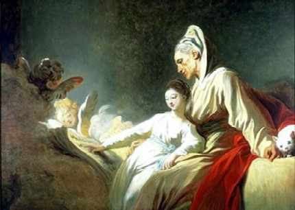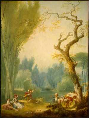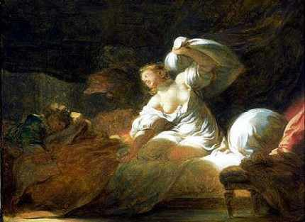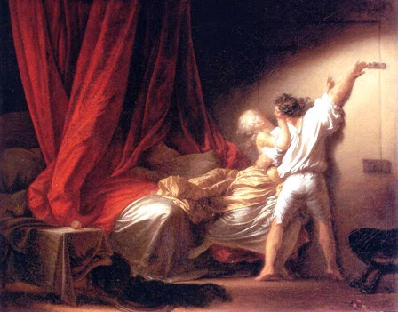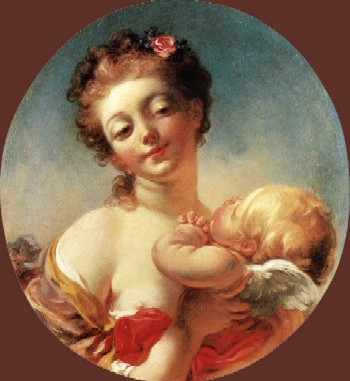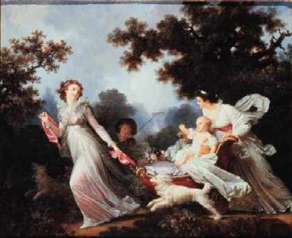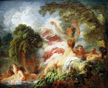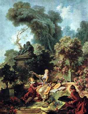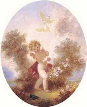 Ο Ζαν Ονορέ Φραγκονάρ (Jean-Onore Fragonard, 1732-1806, Rococo), υπήρξεν από τους πιο μεγάλους και δημοφιλείς ζωγράφους του 18ου αι. Άκμασε μέχρι τη Γαλλικήν Επανάσταση, που έπεσε το άντρο των αριστοκρατών κι άρα έχασε τη πηγή των θεμάτων του. Επίσης παράκμασε εξ αιτίας του ότι δε θέλησε να εναρμονιστεί προς τον αναδυόμενο νεοκλασσικισμό. Τελικά σταμάτησε να ζωγραφίζει κι έμεινε διορισμένος στο Λούβρο, τα τελευταία χρόνια της ζωής του. Ευαίσθητη ιδιοσυγκρασία, με πλούτο συναισθημάτων, άντλησε θέματα κι από την ερωτική μυθολογία.