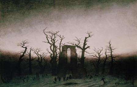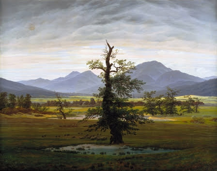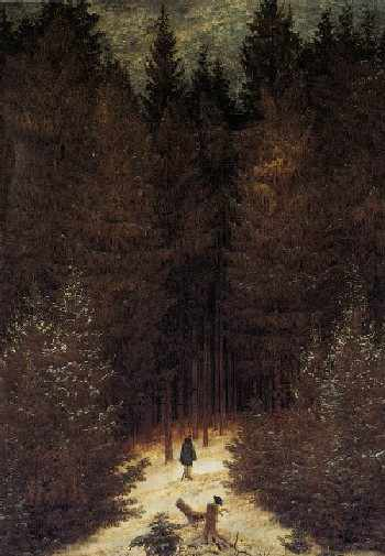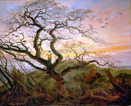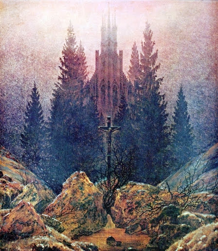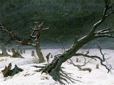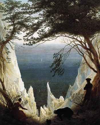 Ο Κάσπαρ Ντάβιντ Φρήντριχ Caspar David Friedrich , 1774-1840, Romanticism) ήταν ο διασημότερος ζωγράφος και χαράκτης του Γερμανικού ρομαντισμού και μοναδική μορφή στην ιστορία της τοπιογραφίας. Η βαθειά θρησκευτική του πίστη κι η αγάπη του για τη γερμανική ύπαιθρο, του εμπνεύσανε σκηνές σπάνιας ομορφιάς κι έντασης, που προβάλλουνε κι εξυμνούνε τη πνευματικότητα στη φύση. Νομίζω πως του αξίζει, καθώς ήταν ιδιότυπη περίπτωση καλλιτέχνη, μια πρόσθετη μνεία και για το λόγο αυτό θα προσθέσω μερικά σχόλια που μας μπάζουνε, πρώτα στην εποχή, στη τεχνοτροπία του κι ύστερα στα βιογραφικά του στοιχεία. Λησμονήθηκε σχεδόν τελείως μετά το θάνατό του και μόνο στις αρχές του 20ού αι. άρχισαν να τονε θεωρούν έναν από τους μεγαλύτερους Γερμανούς ζωγράφους και να εκτιμούν τα συναισθηματικά στοιχεία του έργου του. Πράγματι ήταν εξαιρετικά σπάνια περίπτωση ζωγράφου, χαράκτη, οικογενειάρχη κι ανθρώπου.