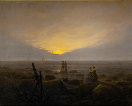 Τούτο ακριβώς συμβαίνει με τη γερμανική, ρομαντική ζωγραφική. Οι αρχές του 19ου αι., με τις ναπολεόντειες εκστρατείες και τη Σύνοδο της Βιέννης, ήτανε σκληρές για τους προοδευτικούς, δημοκρατικούς, πνευματικούς ανθρώπους. H σχέση κι η διασύνδεση ενός διανοουμένου με τον λαό ήταν πράξη πολιτικά ανατρεπτική. Το Γοτθικό ήτανε το παλιό, το Ελληνικό ήτανε το μοντέρνο. Το 1ο ήτανε το γερμανικό, το 2ο ήτανε το ευρωπαϊκό (με τη σημασία, πνευματική, πολιτική και κοινωνική, που οι όροι είχαν εκείνη την εποχή). Ο ρομαντικός ήταν εν μέρει ένας πατριώτης κι εν μέρει ένας εξόριστος μες στην ίδια του τη χώρα. Εξ ου κι η αγάπη του για την εικόνα του ως περιπλανώμενου, του ατόμου που γύρισε τη πλάτη στη κοινωνία και στις ερημιές ατενίζει το φεγγάρι, το τοπίο, τα βράχια της ακτής.