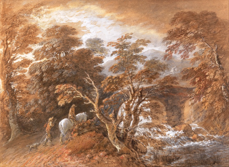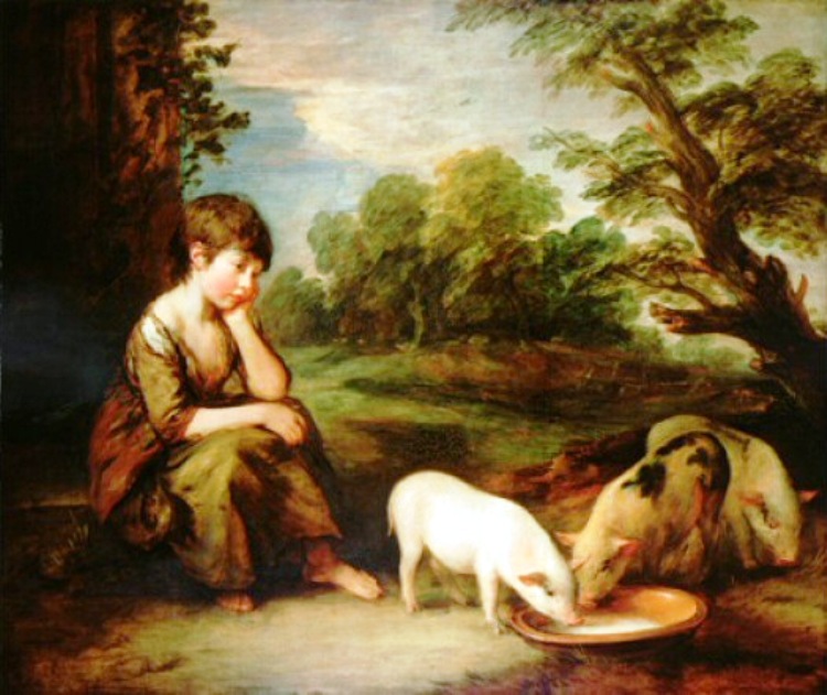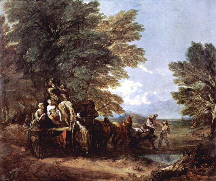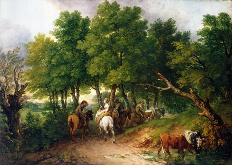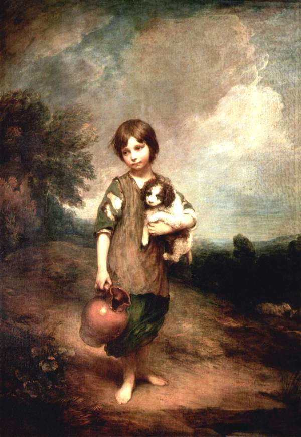Ο Τόμας Γκένσμπορω (Thomas Gainsborough, 1727-1788, Rococo), ήταν ο καλύτερος τοπιογράφος της εποχής του κι ένας από τους πιο ταλαντούχους Άγγλους καλλιτέχνες. Εκδήλωσε το ταλέντο του πολύ νωρίς και μετά τις σπουδές του στο Λονδίνο, άρχισε να εργάζεται ως ζωγράφος στο Ίπσγουϊτς, για να μεταφερθεί έπειτα, σε πιο επιβλητικά μέρη. Πρώτα στο Μπαθ και μετά στο Λονδίνο. Έγινε πλούσιος και διάσημος, φιλοτεχνώντας πορτραίτα που συνδυάζανε κομψότητα και φινέτσα μ’ εντυπωσιακά αυθόρμητη φυσικότητα. Έκανε και θαυμάσια “καπρίτσια“.