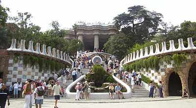 Στα πλαίσια της ίδιας ιδέας, του Γκουέλ, ήτανε κι ένα πάρκο βασισμένο στα βρετανικά πρότυπα, εξ ου κι η βρετανική ονομασία παρκ. Oι εργασίες ξεκινήσανε το 1900 και τερματιστήκανε το 1914 κι είναι άλλη μια περιοχή από κείνες που ‘χει κατοχυρώσει η UNESCO, ως πανανθρώπινη κληρονομιά. Εφόσον όμως οι εργασίες διακοπήκανε σ’ όλο το υπόλοιπο σχέδιο, ο κήπος παρέμεινε σα δημοτικός κήπος, που μπορεί κανείς να το επισκεφθεί έυκολα, μόνο με τουριστικά λεωφορεία και με κάποιο μικρό τίμημα, να μπει στο Σπίτι του Γκαουντί και να δει τα έπιπλα κι ότι άλλο έχει σχεδιάσει.