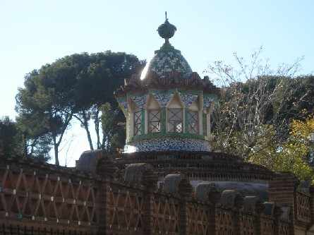 Τα κτίρια αν κι είναι γνήσια κι αξιοπρόσεκτο, είναι εν τούτοις δυσδιάκριτα, λόγω κι άλλων κτιρίων, επίσης σχεδιασμένων, από τον ίδιο, έρχονται να καλύψουνε τη θέα. Πάντως οι στέγες τους έχουνε διαμορφωθεί φανταστικά, με τις ασυνήθιστες πυραμιδοειδείς κατασκευές τους. Το κεντρικό σημείο του πάρκου είναι το πεζούλι με τον πάγκο μορφής θαλασσίου ερπετού. Για να σχεδιάσει τον πάγκο αυτό, ο καλλιτέχνης έβαλε κάποιο γυμνό άτομο να καθίσει πάνω σε άργιλο. Οι καμπύλες του πάρκου δημιουργούνε την εντύπωση της κοινωνικής ατμόσφαιρας. Ο μεγάλος σταυρός στο κέντρο του κεντρικού κτιρίου προσφέρει πλούσια θέα της Βαρκελώνης και μπορεί να χρησιμοποιηθεί ώς πανόραμα. Ειδικά η περιοχή Montjuic καθώς κι η La Sagrada Familia, είναι καλώς ορατές από κεί.