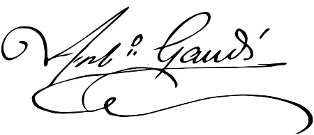 Παράμεινε γοητευμένος από τη φύση κι αφού μελέτησε καλά τις φυσικές γωνίες και καμπύλες, τις ενσωμάτουσε στην Υπογραφή του. Δε χρησιμοποίησε τα γεωμετρικά σχήματα τόσο, όσο μιμήθηκε τον τρόπο που μεγαλώνει κατακόρυφα ένα δέντρο ή ένας άνθρωπος. Τα υπερβολοειδή και παραβολοειδή που …δανείστηκε από τη φύση, μπόρεσε να τα στηρίξει κι υποστηρίξει πανεύκολα με ατσάλινες δεσιές, πράμα που προσέδωσε στις κατασκευές του την εντύπωση, πως ήτανε συνέχεια του περιβάλλοντος. Λόγω των ρευματισμών του, κατά καιρούς υποβλήθηκε σε διάφορες θεραπείες: ομοιοπαθητική, αρωματοθεραπεία, υδρομασσάζ, δίαιτα λαχανικών και κυρίως περπάτημα. Αυτό το τελευταίο εκτός απ’ ανακούφιση στο πρόβλημά του, του ‘δωσε τις ευκαιρίες να συνεχίσει να μελετά το περιβάλλον. Από το 1883 που ξεκίνησε να εργάζεται στη “La Sagrada Familia“, που την ανέλαβε αφού την είχε παρατήσει κάποιος Villar, λόγω κάποιων ασυμφωνιών, και μέχρι το 1893, η φήμη του είχεν αρχίσει σιγά-σιγά να κάνει τον γύρο του κόσμου. Ο Δήμαρχος της Βαρκελώνης Rius y Taulet, τον επιφόρτισε με την ανακαίνιση της Sala de Ciento και το κλιμακοστάσιο του Δημαρχείου. Στο τέλος αυτού του προγράμματος, εξαπατήθηκε από τον Luis Domenech, που ‘τανε γνωστός για τέτοιες ενέργειες στο χώρο των αρχιτεκτόνων.