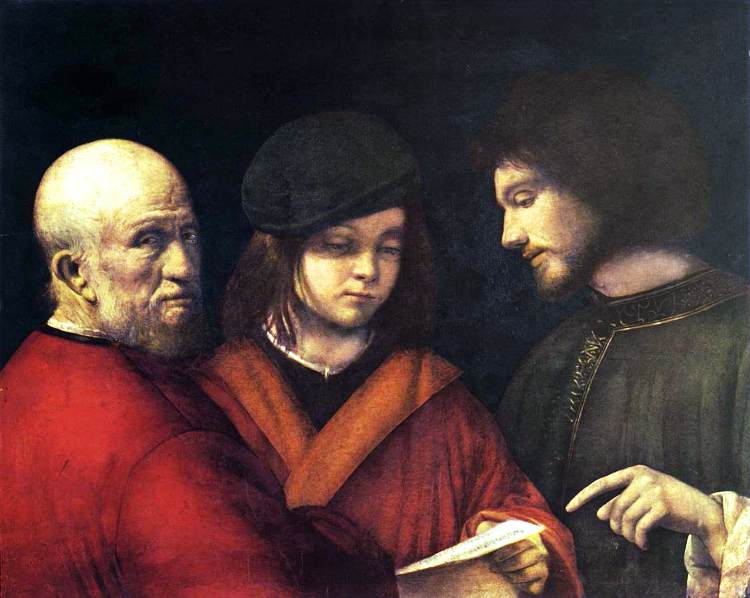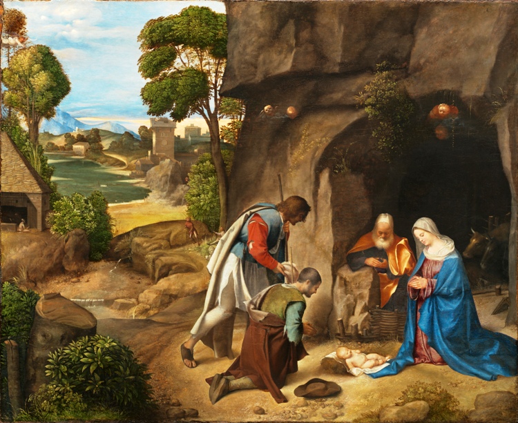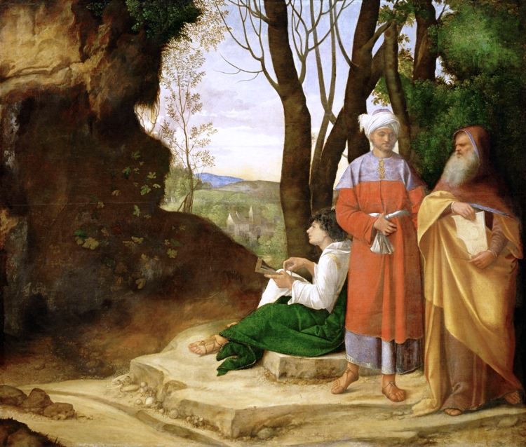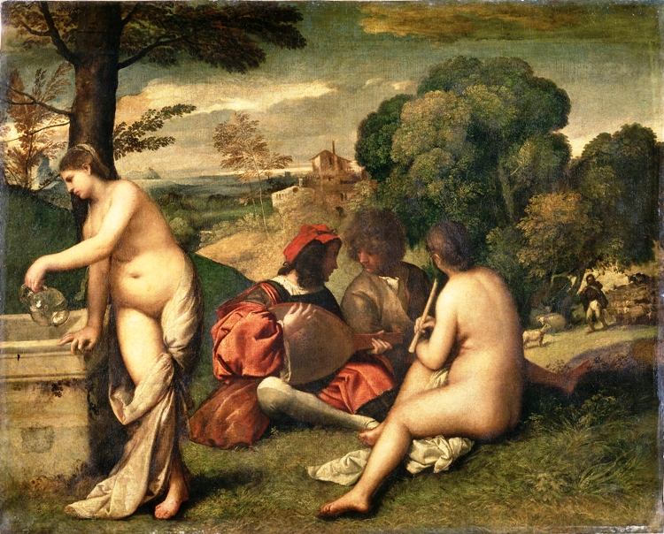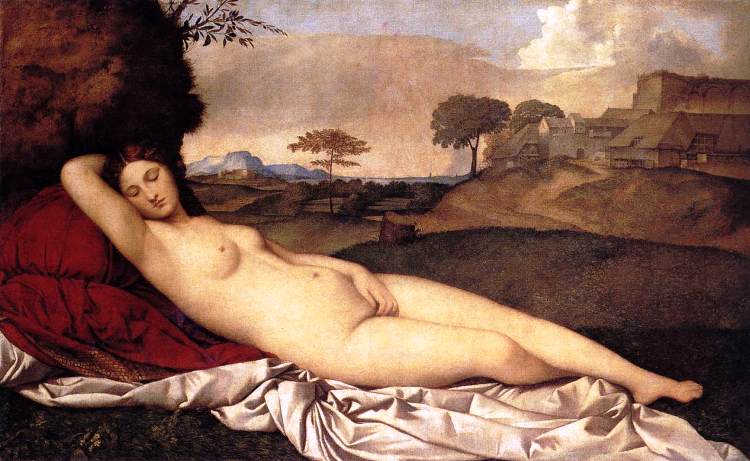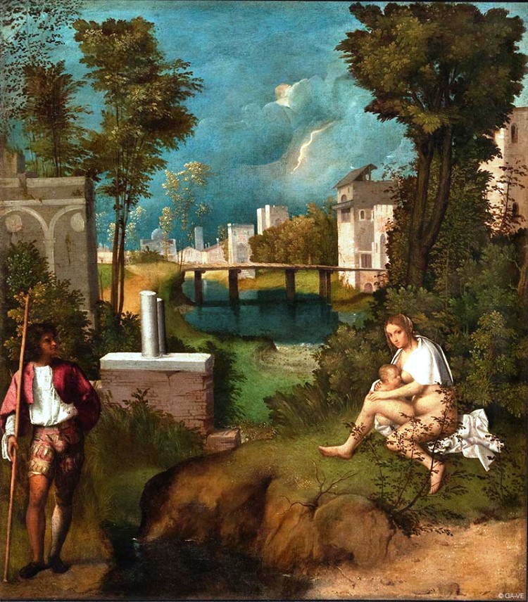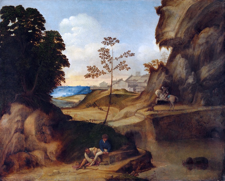 Ο Τζόρτζιο Μπαρμπαρέλλι Ντα Καστεφράνκο “Τζορτζιόνε” (Giorgio Barbarelli Da Castelfranco ‘Giorgione’, 1477-1510, High Renaissance), ήτανε Βενετός ζωγράφος που για τη ζωή του γνωρίζουμε λιγοστά πράματα. Μια χούφτα έργων τέχνης έχουν αποδοθεί σ’ αυτόν μα έστω κι έτσι, κρατά σημαντική θέση στο πάνθεο των μεγάλων καλλιτεχνών όλων των εποχών παγκοσμίως. Ο πρόωρος θάνατός του, έχει φορτίσει το βίο του διαμέσου των αιώνων έτσι, όπως κανενός άλλου. Η εξαιρετική αυτή φήμη, σε σχέση με τη μικρή παραγωγή έργων που διαθέτουμε, οφείλεται στ’ ό,τι κατάφερε ν’ αλλάξει το συνήθη τρόπο ζωγραφικής στην εποχή του. Ήταν ο πρώτος καλλιτέχνης που ειδικεύτηκε σε πίνακες για μικρούς χώρους, -ιδιωτικοί συλλέκτες-, παρά για διακόσμηση δημόσιων ή εκκλησιαστικών χώρων. Επίσης ήτανε πρωτοπόρος στην απεικόνιση διαθέσεων, στους πίνακές του, σε βαθμό που οι σύγχρονοί του δε μπορούσαν να καταλάβουνε τί απεικόνιζε. Ο Vasari ισχυρίζεται πως ο Τζιορτζιόνε -παρατσούκλι τόσο για το ευμεγέθες του αναστήματός του, όσο και για το μεγάλο του ταλέντο, μιας και σημαίνει Μεγάλος Τζιόρτζιο- μπορεί να σταθεί επάξια πλάι στον Λεονάρντο Ντα Βίντσι, ως ένας από τους ιδρυτές της τότε “σύγχρονης” ζωγραφικής.