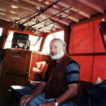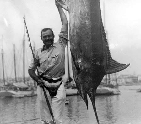 ^ Μία από τις αγαπημένες του συνήθειες ήτανε το ψάρεμα. Δεν είναι τυχαίο, πώς ένα από τα σημαντικότερα έργα του ήταν το βιβλίο Ο Γέρος Κι Η Θάλασσα. Η ιστορία εκτυλίσσεται στο Santiago, όπου ένας γέρο-ψαράς δίνει τη δική του μάχη μ’ ένα τεράστιο marlin. Το 1951, το συγκεκριμένο βιβλίο του χάρισε και το βραβείο Pulitzer και 3 έτη μετά και το Νόμπελ Λογοτεχνίας.