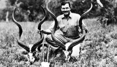 * Εκτός από το ψάρεμα, το αλκοόλ και τη συγγραφή, το κυνήγι αποτέλεσε μια μεγάλη τρέλλα της ζωής του. Το 1940, έχοντας ολοκληρώσει το Για Ποιον Χτυπά Η Καμπάνα, πήρε τους φίλους του, τη 3η σύζυγο του και 2 από τα παιδιά του και βγήκε για κυνήγι, σκοτώνοντας 400 κουνέλια σε μία μόνο μέρα. Στη τρυφερή ηλικία των 3, σκότωσε ένα σκαντζόχοιρο και τον έφαγε κατ’ εντολή του πατέρα του.