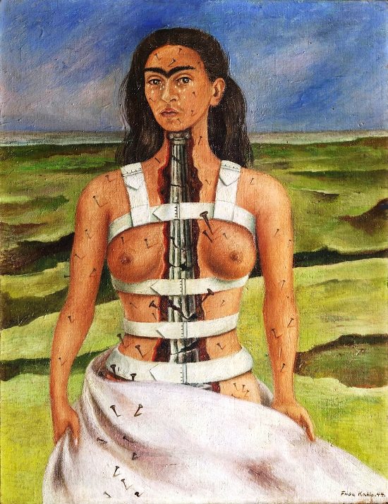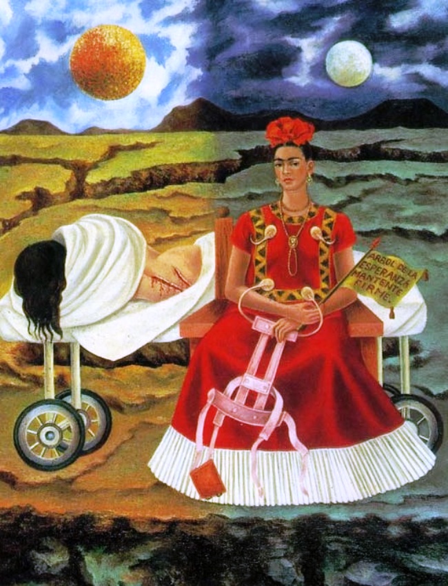 Η Μαγνταλένα Κάρμεν Φρίντα Κάλο υ Καλντερόν “Φρίντα Κάλο” (Magdalena Carmen Frieda Kahlo y Calderón “Frida Kahlo”, 1907-1954, Ναΐφ), υπήρξε φιγούρα που επέδρασε στον 20ό αι. κι από τους λίγους Μεξικανούς καλλιτέχνες που απέκτησε διεθνή φήμη. Ήτανε γνωστή για τα πολλά πορτραίτα, αυτοπροσωπογραφίες κι έργα εμπνευσμένα απ’ τη φύση και τα τεχνουργήματα του Μεξικού. Εμπνευσμένη από τη λαϊκή κουλτούρα της χώρας, χρησιμοποίησε αφελές στυλ λαϊκής τέχνης για να διερευνήσει ζητήματα ταυτότητας, μετα-αποικιοκρατίας, φύλου, τάξης και φυλής στη μεξικανική κοινωνία. Οι πίνακές της είχανε συχνά έντονα αυτοβιογραφικά στοιχεία κι ανακατεύανε το ρεαλισμό με τη φαντασία. Εκτός απ’ ότι ανήκε στο μετεπαναστατικό κίνημα Mexicayotl, που προσπάθησε να καθορίσει μεξικανική ταυτότητα, έχει περιγραφεί ως σουρρεαλίστρια ή μαγική ρεαλίστρια. Ήταν επίσης γνωστή για τη ζωγραφική της σχετικά με την εμπειρία του χρόνιου πόνου.
