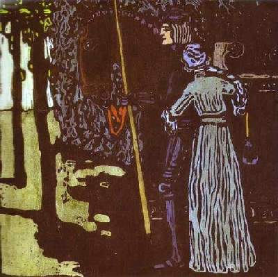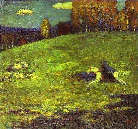 Το 1902 παρατά τη σύζυγό του για την νεαρή ζωγράφο Γκαμπριέλε Μέντερ. Το 1908 επιστρέφει στο Μόναχο με τη σύντροφό του, έπειτα από σύντομα ταξίδια ανά τον κόσμο και γνωρίζει τους, Πωλ Κλέε, Φραντς Μαρκ κι Αουγκούστ Μάκε, που 3 χρόνια μετά, ιδρύουνε μαζί το κίνημα Der Blaue Reiter. Με το ξέσπασμα του Α’ Παγκ. Πολ., το 1914, καταφεύγει στην Ελβετία και τον επόμενο χρόνο, χωρίζει και τη Γκαμπριέλε κι επιστρέφει στη Μόσχα.