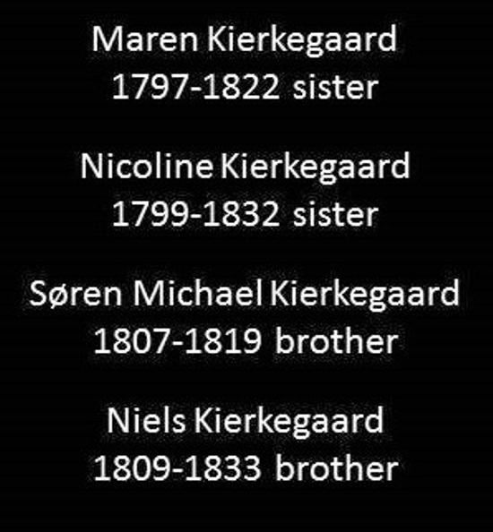—–Ο Κίρκεγκωρ αγαπούσε να περπατά στους κακοτράχαλους δρόμους της Κοπεγχάγης του 19ου αι., όπου σπάνια πήγαιναν άμαξες. Το 1848, έγραψε: «Είχα πραγματική χριστιανική ικανοποίηση στη σκέψη ότι, αν δεν υπήρχε άλλος, υπήρχε σίγουρα ένας άνθρωπος στη Κοπεγχάγη που κάθε φτωχός μπορούσε ελεύθερα να πλησιάσει και να συνομιλήσει μαζί του στο δρόμο, αν δεν υπήρχε άλλος, υπήρχε ένας άνθρωπος που, όποια κι αν ήταν η κοινωνία που σύχναζε, δεν απέφευγε την επαφή με τους φτωχούς, αλλά χαιρετούσε κάθε υπηρέτρια που γνώριζε, κάθε υπηρέτη, κάθε κοινό εργάτη». Η εκκλησία της Παναγίας βρισκόταν στο άκρο της πόλης, όπου ο επίσκοπος Mynster κήρυξε το Ευαγγέλιο. Στην άλλη άκρη ήτανε το Βασιλικό Θέατρο όπου έπαιζε ο Φρου Χάιμπεργκ. Βασισμένοι σ’ υποθετική ερμηνεία ανέκδοτων στα αδημοσίευτα ημερολόγιά του, ειδικά σε πρόχειρο προσχέδιο ιστορίας με τίτλο Ο Μεγάλος Σεισμός, ορισμένοι πρώιμοι μελετητές του υποστήριξαν ότι ο πατέρας του πίστευε πως είχε κερδίσει την οργή του Θεού κι ότι κανέν απ’ τα παιδιά του δεν θα ζούσε πιότερο απ’ αυτόν. Λέγεται ότι πίστευε πως οι προσωπικές του αμαρτίες, ίσως αδιακρισίες όπως η κατάρα του ονόματος του Θεού στα νιάτα του ή η εγκυμοσύνη της Ane εκτός γάμου, απαιτούσαν αυτή τη τιμωρία. Αν και 5 από τα 7 παιδιά του πέθαναν πριν από αυτόν, τόσο ο Søren όσο κι ο αδελφός του Peter έζησαν περισσότερο. Ο Πέτρος, που ήταν 7 χρόνια μεγαλύτερος, έγινε μετά επίσκοπος στο Άαλμποργκ. Η Τζούλια Γουότκιν σκέφτηκε ότι το πρώιμο ενδιαφέρον του Μάικλ για την Εκκλησία της Μοραβίας θα μπορούσε να τον είχε οδηγήσει σε βαθειά αίσθηση των καταστροφικών συνεπειών της αμαρτίας.