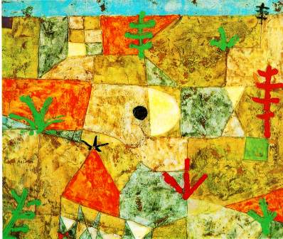 Ο Πάουλ Κλέε (Paul Klee, 1879-1940, Art Nouveau), γεννήθηκε στις 18 Δεκέμβρη 1879 κοντά στη Βέρνη της Ελβετίας γιος του Χανς -μουσικοδιδάσκαλου- και της Μαρία Φρικ, επίσης μουσικού. Μικρός έμαθε να παίζει βιολί και σπούδασε στη Λογοτεχνική Σχολή Βέρνης. Αρχαία Ελληνικά, Μοντέρνα Γαλλικά, Γερμανική και Γαλλική Τέχνη, γενικότερα, ήταν οι αγαπημένες του. Αποφοίτησε το 1898 και πάλεψε μεταξύ της μουσικής και της ζωγραφικής, που τελικά υπερίσχυσε η 2η κι έτσι γράφτηκε στην Ακαδημία Τέχνης Μονάχου, αφού πρώτα παρακολούθησε μερικά ιδιαίτερα μαθήματα. Έμεινε ‘κει μόλις 2 χρόνια και τελικά, χωρίς να ‘χει μείνει ικανοποιημένος, την εγκαταλείπει και ταξιδεύει στην Ιταλία, το 1901-02. Τα 1α του έργα είναι με πέννα και μελάνι, μερικά σκίτσα εξαιρετικά, κυρίως όμως σατιρικά. Παρουσιάζει τα έργα του σε διάφορες εκθέσεις και τελικά προβάλλεται έτσι, σαν Ελβετός γραφίστας.