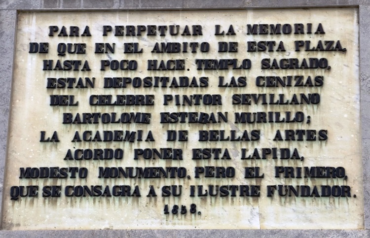 Τα «ιερογλυφικά» που αναφέρονται εκεί, εικονογραφήσεις των έργων ελέους, μπορούν να ταυτιστούν με τους 6 πίνακες του Murillo που, σύμφωνα με τις περιγραφές των Antonio Ponz και Juan Agustín Ceán Bermúdez, κρεμάστηκαν στους τοίχους του κυρίως ναού της εκκλησίας κάτω από το γείσο, σχηματίζοντας μια άλλη από τις πρωτεύουσες σειρές της ώριμης περιόδου του ζωγράφου. Τέσσερα από αυτά κλάπηκαν από τον στρατάρχη Soult κατά τη διάρκεια του πολέμου της ανεξαρτησίας και σήμερα είναι διάσπαρτα σε διαφορετικά μουσεία, με μόνο τα δύο μεγαλύτερα, σε μορφή τοπίου, που βρίσκονταν στο εγκάρσιο κλίτος, να διατηρούνται στη θέση τους. Τα θέματά του, που το καθένα σχετίζεται μ’ έργο ελέους, είναι: Η θεραπεία του παραλυτικού (Λονδίνο, Εθνική Πινακοθήκη), επίσκεψη στους αρρώστους. Ο Άγιος Πέτρος απελευθερωμένος από τον άγγελο (Αγία Πετρούπολη, Μουσείο Ερμιτάζ), λυτρώνει τους αιχμαλώτους. Πολλαπλασιασμός των άρτων και των ψαριών, επί τόπου, τροφοδοτώντας τους πεινασμένους. Η επιστροφή του άσωτου υιού, γυμνή ενδυμασία. Ο Αβραάμ κι οι Τρεις Άγγελοι, για να δώσουνε κατάλυμα στον προσκυνητή κι ο Μωυσής κάνει νερό να ρέει από το βράχο του Χωρήβ, επί τόπου, για να δώσει ποτό στους διψασμένους. Ο Ceán Bermúdez σχολίασε γι ‘αυτούς: