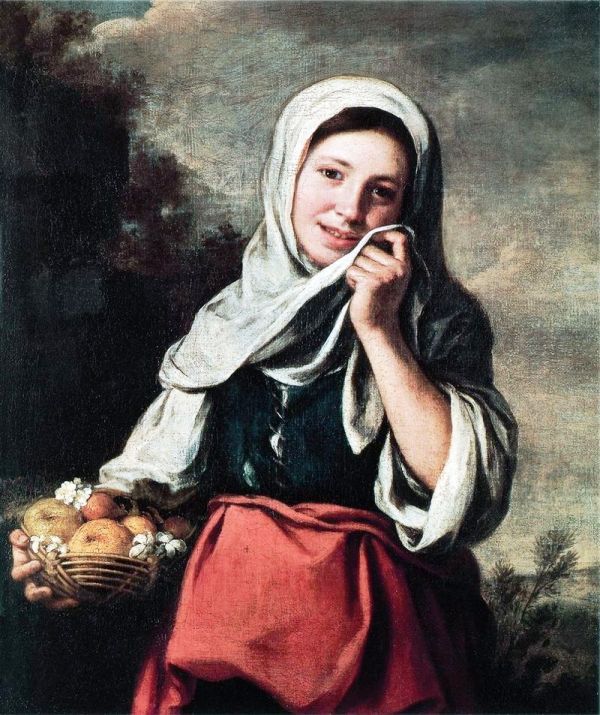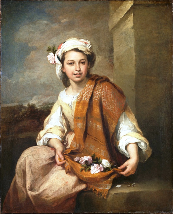Με τον ίδιο φιλικό κι ανεκδοτολογικό τόνο, γοητευμένος από τους απόκληρους και τους απλούς ανθρώπους, με τις αυθόρμητες αντιδράσεις τους, στις Δύο γυναίκες στο παράθυρο πιθανότατα απεικόνισε σκηνή οίκου ανοχής, όπως έχει επισημανθεί από το 19ο αι. Το λεγόμενο κορίτσι με λουλούδια στη πινακοθήκη Dulwich, που κάποτε θεωρήθηκε ως πίνακας ζωγραφικής και συγχέεται με πωλητή λουλουδιών, ανταποκρίνεται καλύτερα στο αλληγορικό είδος και μπορεί να ερμηνευτεί ως αναπαράσταση της Άνοιξης, που ο σύντροφος θα μπορούσε να ‘ναι η προσωποποίηση του καλοκαιριού με τη μορφή νεαρού άνδρα καλυμμένου με τουρμπάνι κι αυτιά καλαμποκιού. Αυτοί θα μπορούσαν να είναι οι 2 πίνακες που αντιπροσωπεύουν αυτές τις εποχές του έτους που απέκτησε ο Nicolás de Omazur στη διαθήκη του Justino de Neve και δεν θα ‘ταν επίσης οι μόνες αλληγορίες που ζωγράφισε ο Murillo, αφού ο Omazur ήταν επίσης ιδιοκτήτης πίνακα, που σήμερα βρίσκεται σε άγνωστη τοποθεσία, αφιερωμένος στη Μουσική, τον Βάκχο και την Αγάπη.