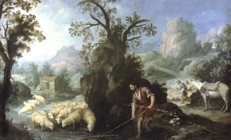 Η σειρά, που αρχικά επρόκειτο ν’ αποτελείται από 5 πίνακες που μόνο 4 είναι γνωστοί, ήταν τον 18ο αι., στη Μαδρίτη στη κατοχή του μαρκησίου του Σαντιάγο και στις αρχές του 19ου αι. είχε ήδη διασκορπιστεί. 2 απ’ τις ιστορίες του βρίσκονται σήμερα στο Μουσείο Ερμιτάζ, εκείνες που απεικονίζουν τον Ιακώβ ευλογημένο από τον Ισαάκ και τη Σκάλα του Ιακώβ κι οι υπόλοιπες 2 στις ΗΠΑ: ο Ιακώβ ψάχνει για τα οικιακά είδωλα στη σκηνή της Ραχήλ, που διατηρείται στο Μουσείο Τέχνης του Κλήβελαντ κι ο Ιακώβ βάζει τις ράβδους στο κοπάδι του Λάβαν. που ανήκει στο Μουσείο Meadows στο Ντάλας. Τα πλατιά τοπία, ειδικά στα 2 τελευταία, διατεταγμένα γύρω από κεντρικό μοτίβο κι ανοιχτά σε μακρινό φωτεινό φόντο πάνω του σκιαγραφούνται τα διάχυτα προφίλ των βουνών, υποδηλώνουν τη γνώση των Φλαμανδών ζωγράφων τοπίων όπως ο Joos de Momper ή ο Jan Wildens κι ίσως επίσης των ιταλικών τοπίων του Gaspard Dughet, αυστηρά σύγχρονη, ενώ η προσοχή που δίνεται στα βοοειδή, άφθονη και στους 2 πίνακες, φαίνεται να παραπέμπει στον Orrente επανερμηνευμένο με τον πλούσιο τρόπο της Σεβίλλης. Με απόλυτο νατουραλισμό, ο Murillo θα αναπαραστήσει στο Jacob βάζει τις ράβδους στο ποίμνιο του Λάβαν ακόμη και το ζευγάρωμα των προβάτων που αναφέρει το βιβλικό κείμενο, που για λόγους ευπρέπειας πιθανότατα κρύφτηκε κάτω απ’ την επαναζωγραφική πιθανώς ήδη από το 19ο αι. για να ‘ρθει ξανά στο φως τον 20ό.