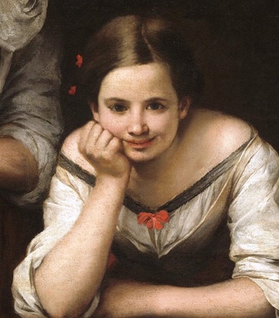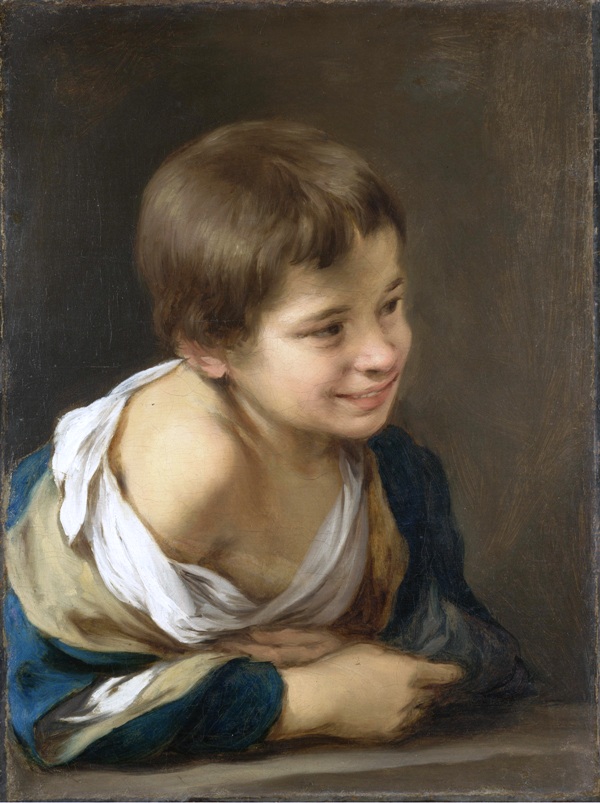 Αν κι οι πρωταγωνιστές του είναι συνήθως παιδιά ζητιάνων ή παιδιά ταπεινών οικογενειών, κακοντυμένα και ακόμη και κουρελιασμένα, οι φιγούρες του μεταφέρουν πάντα αισιοδοξία, καθώς ο ζωγράφος αναζητά την ευτυχισμένη στιγμή του παιχνιδιού ή του σνακ που επιδίδεται στη διασκέδαση. Η μοναξιά κι ο αέρας συμπόνιας που απεικόνισε το Παιδί που γλιστρά από το Μουσείο του Λούβρου, που λόγω της τεχνικής και της επεξεργασίας του φωτός μπορεί να χρονολογηθεί γύρω στο 1650 ή λίγο νωρίτερα, θα εξαφανιστεί στα μεταγενέστερα έργα, με χρονολογίες που κυμαίνονται από το 1665 έως το 1675. Η σύγκριση, που έχει ήδη προταθεί από τον Ντιέγκο Ανγκούλο, μεταξύ του Παιδιού που γλιστράει μακριά από το Λούβρο και ενός άλλου πίνακα παρόμοιου θέματος, αλλά μεταγενέστερης ημερομηνίας, εκείνου που απεικονίζει μια γιαγιά να ξεφλουδίζει τον εγγονό της, που σώζεται στη Pinacoteca στο Μόναχο, απεικονίζει την αλλαγή στάσης: οι νότες θλίψης και μοναξιάς έχουν εξαφανιστεί εντελώς και αυτό που προσελκύει τον ζωγράφο είναι το παιδικό πνεύμα πάντα έτοιμο να παίξει, Απεικονίζει το παιδί να διασκεδάζει με μια κόρα ψωμί και να αποσπάται η προσοχή του από το μικρό σκυλί που παίζει ανάμεσα στα πόδια του, ενώ η γιαγιά φροντίζει για την υγιεινή του, μεταφέροντας ίσως στη ζωγραφική το παλιό ρητό, «υγιές κι όμορφο παιδί με ψείρες». Αυτή η παιδική χαρά είναι ο απόλυτος πρωταγωνιστής ενός άλλου μικρού σχήματος καμβά επεξεργασμένου με ζωηρές και πρόχειρες πινελιές που διατηρούνται στην Εθνική Πινακοθήκη του Λονδίνου, του λεγόμενου Γελαστού Αγοριού που γέρνει έξω από το παράθυρο, χωρίς άλλο ανέκδοτο από το απλό ανοιχτό χαμόγελο του αγοριού που γέρνει έξω από το παράθυρο από το οποίο βλέπει κάτι που τον κάνει να γελάει, Αλλά αυτό είναι κρυμμένο από τους θεατές του πίνακα. Γίνεται επίσης αντιληπτό στο έργο του ρωσικού αγοριού ερμιτάζ με σκύλο.
