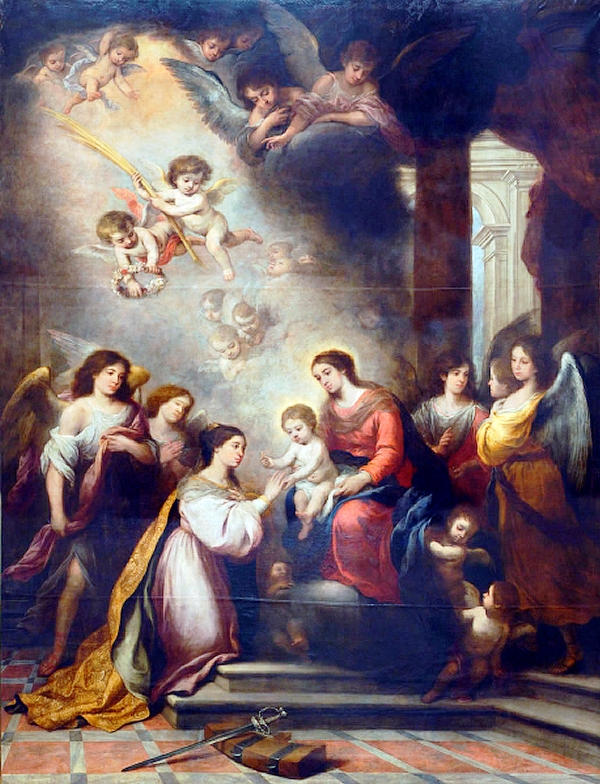 Οι πίνακες του Murillo, με τη μορφή ημικυκλικού σημείου, αντιπροσώπευαν ιστορίες για την ίδρυση της Βασιλικής της Santa Maria Maggiore στη Ρώμη, τα 2 μεγαλύτερα, που βρίσκονται στο κεντρικό κλίτος και φωτίζονται από τους φεγγίτες του τρούλου και την Άμωμη Σύλληψη και το Θρίαμβο της Ευχαριστίας στα 2 μικρότερα, τοποθετημένα στα κεφάλια των πλευρικών κλιτών. Τα 4 έφυγαν απ’ την Ισπανία στη διάρκεια του Πολέμου της Ανεξαρτησίας και μόνο τα 2 πρώτα, που προορίζονταν για το Μουσείο του Ναπολέοντα, επιστράφηκαν το 1816, αργότερα ενσωματώθηκαν στο Μουσείο Πράδο, ενώ τα υπόλοιπα 2, μετά από διαδοχικές πωλήσεις, ανήκουνε στο Μουσείο του Λούβρου, που αντιπροσωπεύει την Άμωμη Σύλληψη και σε αγγλική ιδιωτική συλλογή το Θρίαμβο της Ευχαριστίας.