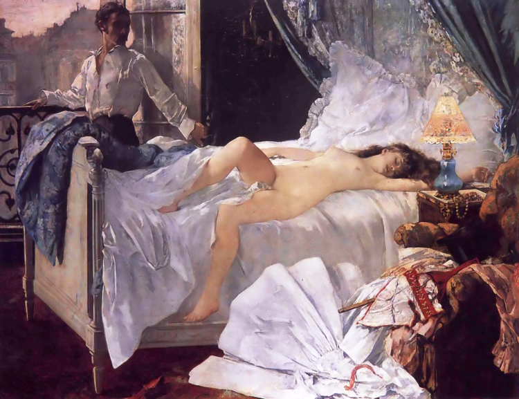 ΓΚΑΜΙΑΝΙ: Όχι! Πρώτα απ ‘όλα ήθελα να χωρίσω με τους άντρες. Για να σκοτώσω κάθε ίχνος επιθυμίας για αυτούς ή λύπης, έτρεξα σε όλες τις απολαύσεις που μπορούν να μας προσφέρουν οι άντρες. Έθεσα τον εαυτό μου στα χέρια μιας διάσημης μαστροπού. Βρήκε άντρες για μένα κι ήταν οι πιο έμπειροι και μυώδεις Ηρακλείς της πόλης της Φλωρεντίας. Έχει συμβεί πραγματικά να έχω τρέξει ως και τριάντα δύο διαδρομές σε ένα πρωί και να θέλω ακόμα περισσότερους. Έξι αθλητές έπεσαν θύμα μου. Αλλά ένα βράδυ τα πήγα καλύτερα από αυτό. Ήμουν με τρεις από τους πιο ισχυρούς πρωταθλητές μου. Η συμπεριφορά μου και τα λόγια μου τους έβαλαν σε τόσο καλή διάθεση που μου ήρθε μια διαβολική ιδέα. Για να το δοκιμάσω, παρακάλεσα τον πιο δυνατό να ξαπλώσει ανάσκελα κι ενώ εγώ απολάμβανα τον εαυτό μου στο έπακρο στο κοντάρι του, που ‘ταν ένα τέρας, γρήγορα με σοδομούσε ο δεύτερος. Το στόμα μου άρχισε να δουλεύει στον τρίτο και του προκάλεσε τέτοια διέγερση που στριφογύριζε σαν δαίμονας και έβγαζε τις πιο παθιασμένες κραυγές. Ξαφνικά, οι τέσσερις μας νιώσαμε την υπέροχη οργαστική αίσθηση και βυθιστήκαμε σε ένα τέλειο ντους την ίδια στιγμή. Τι φλογερή απόλαυση γεύσης στον ουρανίσκο μου; Τι απολαυστική μεθυστική υπερχείλιση στα εντόσθιά μου; Μπορείς να συλλάβεις αυτές τις υπερβολές; Φαντασου μόνο; … Από τότε, κουρασμένη, αηδιασμένη με τους άντρες, δεν μπόρεσα ποτέ να καταλάβω ή να βιώσω πραγματική ηδονή, εκτός από όταν μπορούσα να κρατήσω στην αγκαλιά μου το λεπτό γυμνό, τρεμάμενο σώμα ενός αθώου κοριτσιού, ακόμα παρθένου, που μπορεί κανείς να μυήσει και να διδάξει τις τέχνες του έρωτα, που εκπλήσσεται, απορεί και μετά γοητεύεται από τις άγνωστες αισθήσεις… Αλλά… τι σου συμβαίνει; Τι κάνεις;