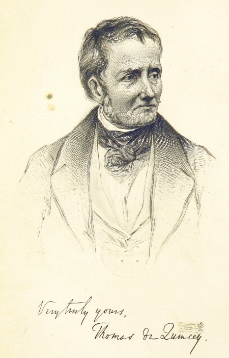Υπήρχε, πράγματι, επιβεβαιώνουν οι συνεργάτες του, ένα στοιχείο ρομαντισμού ακόμα και στην αμεροληψία του, όπως υπήρχε σε όλα του. και τα διπλωματικά κι άλλα μέσα με τα οποία κατασκεύασε να κρατήσει μακριά από διεκδικητικούς πιστωτές, ενώ εκπλήρωνε σχολαστικά πολλές υποχρεώσεις, συχνά αφόπλιζε την εχθρότητα και μετέτρεπε την ενόχληση σε διασκέδαση. Οι περίφημες Εξομολογήσεις ενός Άγγλου οπιοφάγου δημοσιεύθηκαν σε μικρό τόμο το 1822 και τράβηξαν πολύ αξιοσημείωτο βαθμό προσοχής, όχι απλώς από τις προσωπικές του αποκαλύψεις, αλλά από την εξαιρετική δύναμη της ονειρικής ζωγραφικής του. Κανένας άλλος λογοτεχνικός άνθρωπος της εποχής του, όπως παρατηρήθηκε, δεν απέκτησε τόσο υψηλή και παγκόσμια φήμη από τέτοιες απλώς δραπέτες προσπάθειες.