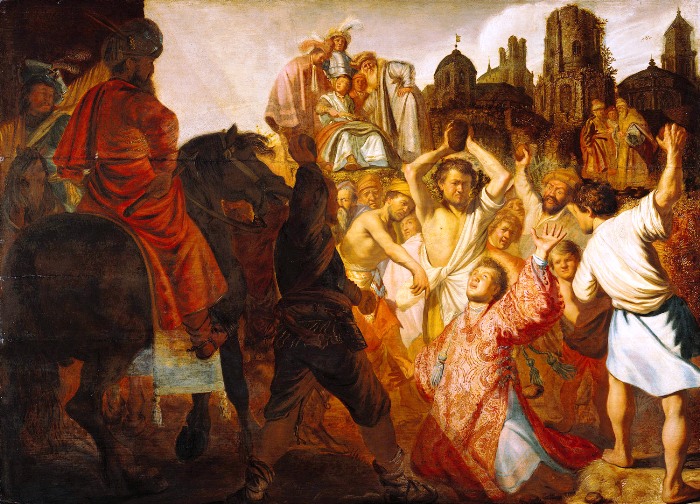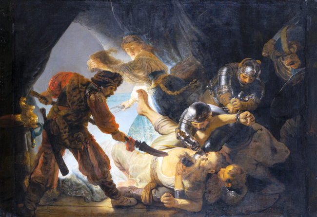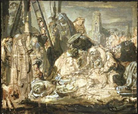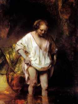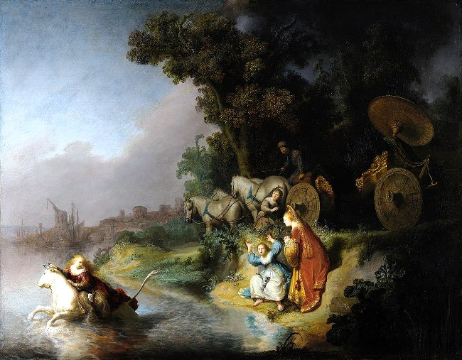 Ο Ρέμπραντ (Rebrandt Hamerszoon van Rijn, 1606-1669, Baroque), ήτανε μεγάλος Ολλανδός ζωγράφος, χαράκτης και σχεδιαστής της Χρυσής Εποχής. Θεωρείται γενικά ένας από τους μεγαλύτερους εικαστικούς καλλιτέχνες στην ιστορία της δυτικής τέχνης. Εκτιμάται ότι τα σωζόμενα έργα του είναι περίπου 300 πίνακες, 300 χαρακτικά κι αρκετές 100άδες σχέδια. Σ’ αντίθεση με τους περισσότερους Ολλανδούς ζωγράφους του 17ου αι., τα έργα του απεικονίζουν ευρύ φάσμα στυλ και θεμάτων, από πορτραίτα κι αυτοπροσωπογραφίες, τοπία, σκηνές είδους, αλληγορικές κι ιστορικές σκηνές, βιβλικά και μυθολογικά θέματα και μελέτες ζώων. Οι συνεισφορές του στη τέχνη ήρθαν σε περίοδο που οι ιστορικοί αποκαλούν Ολλανδική Χρυσή Εποχή.