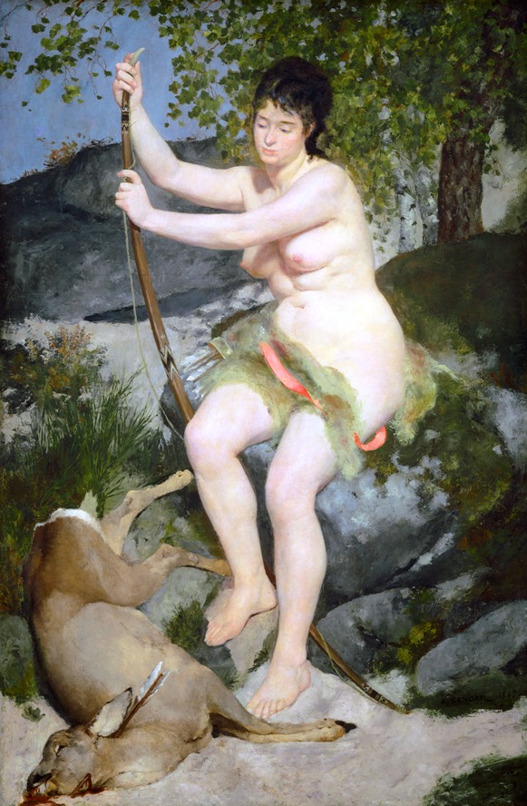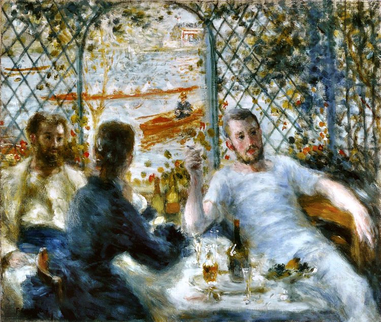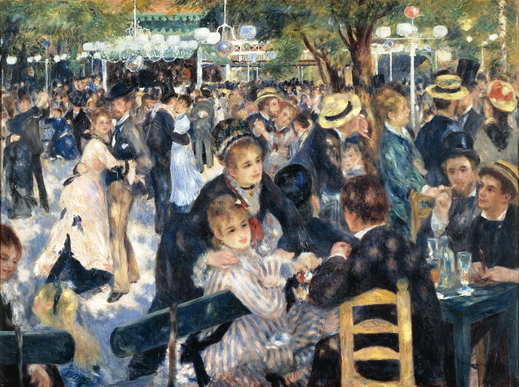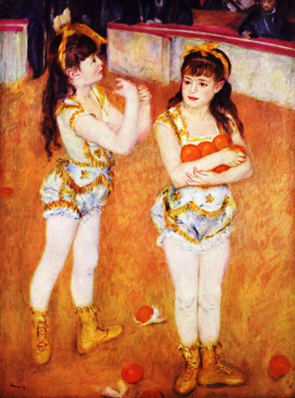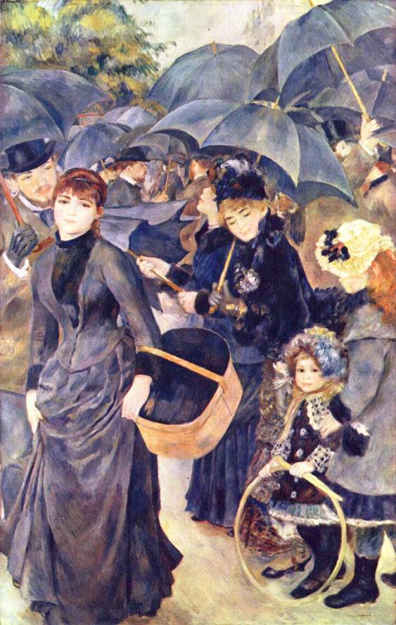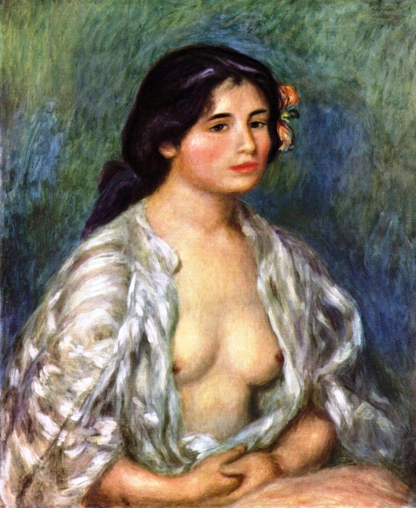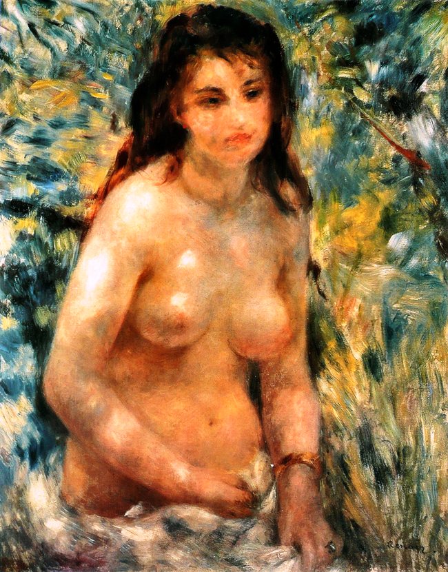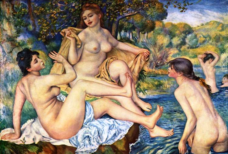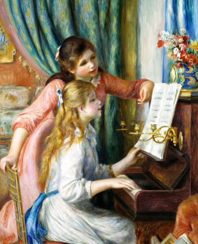 Ο Πιέρ Ωγκύστ Ρενουάρ (Pierre-Auguste Renoir, 1841-1919, Late Impressionism), γεννήθηκε στο Λιμόζ, γιος του Λεονάρντ Ρενουάρ, ράφτη και της Μαργκερίτ, εργάτριας. Στα 3 του μετακομίζουνε στο Παρίσι και στα 7 πάει σε καθολικό σχολείο. Τα βράδια παρακολουθούσε μαθήματα Σχολής Σχεδίου & Διακόσμησης. Καθώς έδειχνε αξιοσημείωτο ταλέντο στο σχέδιο, πήγε μαθητευόμενος σε ένα εργοστάσιο πορσελάνης, όπου ζωγράφιζε πιάτα. Όλ’ αυτά τα χρόνια έκανε συχνές επισκέψεις στο Λούβρο, μελετώντας τη τέχνη των 1ων Γάλλων δασκάλων, ιδιαίτερα κείνων του 18ου αι. –Αντουάν Βαττώ, Φρανσουά Μπουσέ και Ζαν Ονορέ Φραγκονάρ. Ο βαθύς σεβασμός του γι’ αυτούς επηρέασε τη ζωγραφική του σε όλη τη καρριέρα του. Προς το τέλος της χρονιάς πηγαίνει στο ατελιέ των αδελφών Λεβί, που όμως λίγο αργότερα κλείνει κι έτσι στρέφεται προς το ατελιέ του Ζιλμπέρ. Όταν μάζεψε λίγα χρήματα, έδωσε εξετάσεις στη Σχολή Καλών Τεχνών.