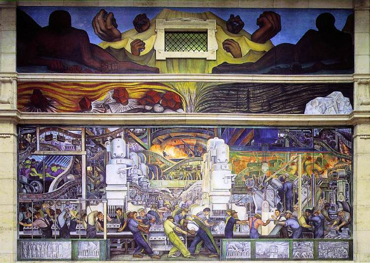 Το 1924, η πολιτική αστάθεια ανάγκασε τον ευεργέτη του, υπουργό παιδείας να παραιτηθεί. Έτσι μένει μόνος να συνεχίσει την εργασία, παρ’ όλο που η ομάδα δεν έχασε την εύνοια του νέου υπουργού. Το πρόγραμμα ολοκληρώθηκε τελικά το 1928. Είναι ένα ζωντανά ζωηρόχρωμο παράδειγμα της μεγαλοφυίας του, γεμάτο μ’ αγαπημένα καλολογικά στοιχεία -προ- ισπανικός πολιτισμός, ινδιάνικη ζωή κι αγρότες στην εργασία και στο παιχνίδι. Η κεφαλαιοκρατική τέχνη κι η κομμουνιστική πολιτική κατά τη διάρκεια των επομένων ετών, του προσδώσανε μεγάλη φήμη. Παρ’ ολ’ αυτά, το κόμμα τονε διέγραψε (1929), εκτιμώντας πως η τέχνη του “επευφημούσε” τον νεοπλουτοκρατισμό, αντίθετα με το κοινό, που επικροτούσε τα έργα του.