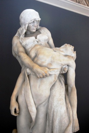 Στη Ρώμη βρέθηκε για 3 περίπου χρόνια, από το 1880 ως το 1883 για να μελετήσει τους κλασσικούς κι εκεί φιλοτεχνεί τη “Βάρβαρη Μητέρα” μια γυναίκα βαρβαρικής καταγωγής εμφανώς, που σέρνει το κορμί του γιου της μακριά από το πεδίο μάχης, μια συγκινησιακή και πλήρως συναισθηματική σύνθεση κι αυτή σε μάρμαρο. Με το γλυπτό αυτό καθορίζει -κατά κάποιο τρόπο- πως καμμιά σχέση δεν έχει η καταγωγή του ατόμου όσον αφορά στον πόνο και στον αγώνα που δίνει για να τονε παλέψει. Έν εξαιρετικό γλυπτό, έν εύγλωττο μήνυμα! Αυτή η σύνθεση συνδυάζει το δράμα με τη πρωτόγονη συγκίνηση.