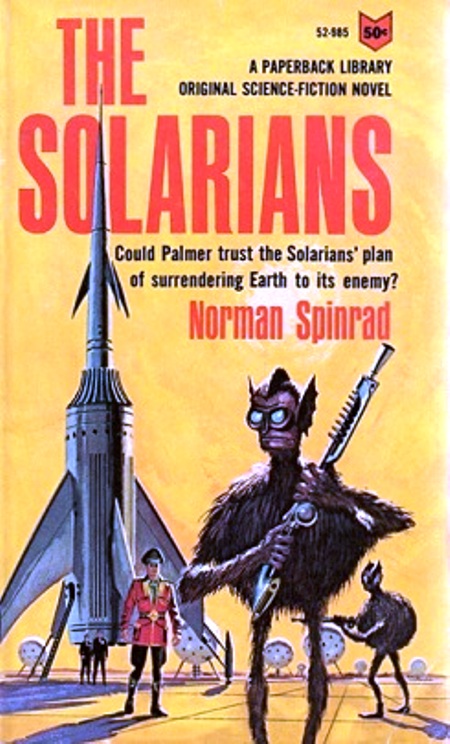 Οι Σολαριανοί (1966), ήταν το πρώτο δημοσιευμένο μυθιστόρημα του Σπίνραντ. Σε αντίθεση με το αμφιλεγόμενο μεταγενέστερο έργο του Spinrad, αυτό το μυθιστόρημα είναι μια mainstream διαστημική όπερα που περιλαμβάνει διαστημικές μάχες, ταχύτερους από το φως διαστημικούς δίσκους και έναν εξωγήινο εχθρό, τον Duglaari. Η πλοκή του μυθιστορήματος αφορά έναν διοικητή στόλου που ονομάζεται Palmer ο οποίος έρχεται σε επαφή με μια φυλή που ονομάζεται Solarians, οι οποίοι βγαίνουν από την απομόνωση για να βοηθήσουν την ανθρωπότητα στον μακρύ πόλεμό της εναντίον των Duglaari.