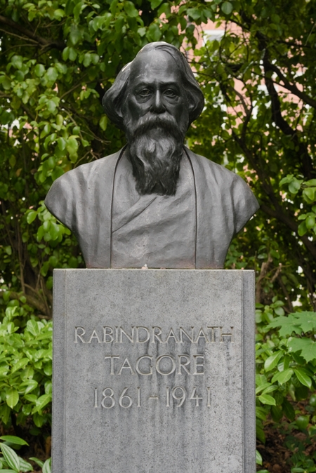 Ο Rabîndranâth Tagore (Ραμπιντρανάθ Ταγκόρ) ήτανε Βεγγαλέζος ποιητής, συγγραφέας, θεατρικός συγγραφέας, συνθέτης, φιλόσοφος, ηθοποιός, κοινωνικός μεταρρυθμιστής και ζωγράφος την εποχή της Αναγέννησης της Βεγγάλης. Αναδιαμόρφωσε τη λογοτεχνία και τη μουσική της, καθώς και την ινδική τέχνη με τον μοντερνισμό με βάση τα συμφραζόμενα στα τέλη του 19ου και στις αρχές του 20ού αι.. Συγγραφέας της βαθιά ευαίσθητης, φρέσκιας κι όμορφης» ποίησης του Gitanjali, έγινε το 1913 ο 1ος μη Ευρωπαίος κι ο 1ος στιχουργός που κέρδισε Βραβείο Νόμπελ Λογοτεχνίας. Τα ποιητικά τραγούδια θεωρήθηκαν πνευματικά και φιλεύσπλαχνα. που η κομψή πεζογραφία κι η μαγική ποίησή του ήτανε δημοφιλείς στην ινδική υποήπειρο. Ήταν μέλος της Βασιλικής Ασιατικής Εταιρείας. Αναφερόμενος ως “ο βάρδος της Βεγγάλης“, ήτανε γνωστός με τα προσωνύμια: Γκουρουντέμπ, Κομπαγκούρου και Μπισουοκόμπι.