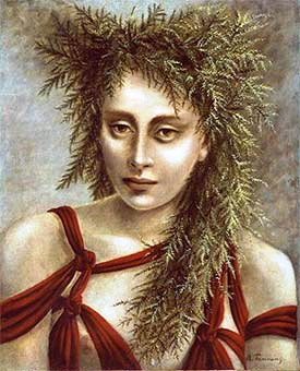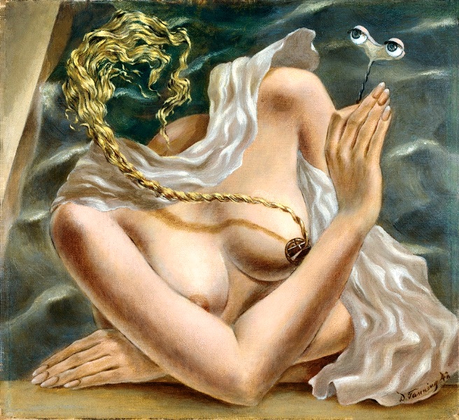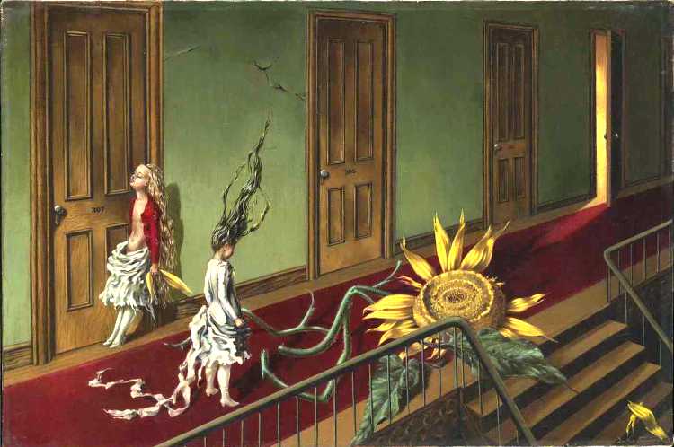 Η Δωροθέα Μάργκαρετ Τάνινγκ (Dorothea Margaret Tanning, 25 Αυγούστου 1910 – 31 Γενάρη 2012, Surrealism), ήταν ελεύθερο, επαναστατικό πνεύμα και πολυτάλαντη Αμερικανίδα καλλιτέχνις -γλύπτρια, συγγραφέας, ποιήτρια και ζωγράφος-, που ‘μαθε να ζωγραφίζει κυρίως από τις πολλές επισκέψεις της σε μουσεία και γκαλερί. Γεννήθηκε στο Γκέηλσμπουργκ Ιλλινόϊς, στις 25 Αυγούστου 1910 και παράτησε τις σπουδές στο εκεί Κολέγιο Νοξ. Φοίτησε 2 βδομάδες στην Ακαδημία Καλών Τεχνών Σικάγο, το 1930, αναχώρησε μόνη της για να επισκεφτεί τη Νέα Υόρκη και ν’ ανακαλύψει το κόσμο της ζωγραφικής. Γοητεύτηκε από τη σημαντικήν έκθεση “Φανταστική Τέχνη, Νταντά, Σουρρεαλισμός” το 1936, που ‘χε διοργανώσει το Μουσείο Μοντέρνας Τέχνης. Το 1939 ταξίδεψε με πλοίο στην Ευρώπη, για να επισκεφτεί πινακοθήκες και μουσεία. Όταν επέστρεψε στη Νέα Υόρκη, εξέθεσε τα σουρρεαλιστικά έργα της στη Julian Levy Gallery. Το 1942 γνώρισε τον Ερνστ και συνάψανε δεσμό που ‘μελλε να κρατήσει, για τον άστατο Γερμανό καλλιτέχνη.