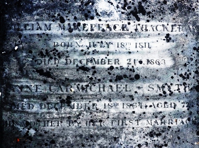 Η μητέρα του Thackeray, Anne Becher (γεννημένη το 1792), ήταν «μία από τις βασιλεύουσες ομορφιές της εποχής» και κόρη του John Harmon Becher, συλλέκτη της περιοχής South 24 Parganas (πεθ. Καλκούτα, 1800), μιας παλιάς οικογένειας πολιτών της Βεγγάλης «γνωστής για την τρυφερότητα των γυναικών της». Η Anne Becher, η αδελφή της Harriet κι η χήρα μητέρα τους, επίσης Harriet, είχαν σταλεί πίσω στην Ινδία από την αυταρχική κηδεμόνα γιαγιά της, Ann Becher, το 1809 με τον κόμη Howe. Η γιαγιά της Άννας της είχε πει ότι ο άντρας που αγαπούσε, ο Χένρι Καρμάικλ-Σμάιθ, σημαιοφόρος των Μηχανικών της Βεγγάλης, που τονε συνάντησε σε χοροεσπερίδα το 1807 στο Μπαθ, είχε πεθάνει, ενώ του είπαν ότι η Άννα δεν ενδιαφερόταν πλέον γι’ αυτόν. Κανένας από αυτούς τους ισχυρισμούς δεν ήταν αληθής. Αν κι ο Carmichael-Smyth ήταν από διακεκριμένη στρατιωτική οικογένεια της Σκωτίας, η γιαγιά της Anne έφτασε στα άκρα για να αποτρέψει το γάμο τους. Τα επιζώντα οικογενειακά γράμματα δηλώνουν ότι ήθελε καλύτερο ταίρι για την εγγονή της.
