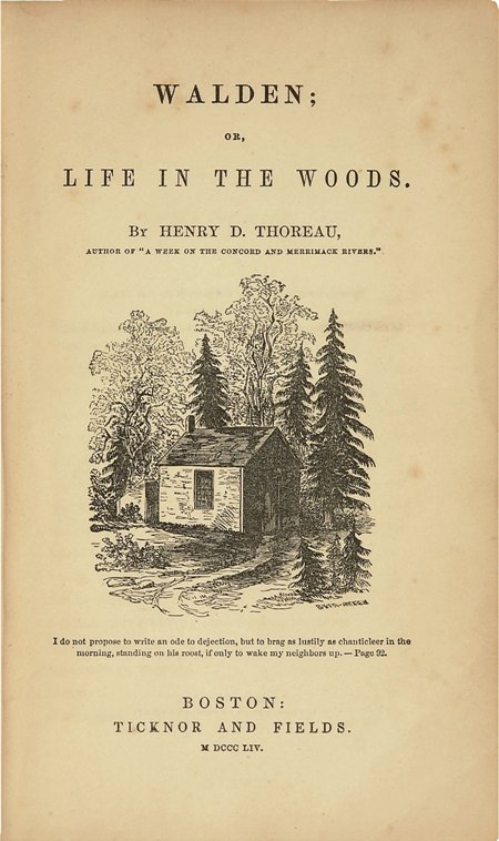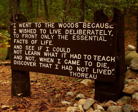 “Πήγα στο δάσος επειδή ήθελα να ζήσω σκόπιμα, ν’ αντιμετωπίσω μόνο τα βασικά γεγονότα της ζωής και να δω αν δεν μπορούσα να μάθω τι έπρεπε να διδάξει κι όχι, όταν ήρθα να πεθάνω, να ανακαλύψω ότι δεν είχα ζήσει. Δεν ήθελα να ζήσω αυτό που δεν ήταν ζωή, η ζωή είναι τόσο αγαπητή. Ούτε ήθελα να κάνω τη παραίτηση, εκτός αν ήταν απολύτως απαραίτητο. Ήθελα να ζήσω βαθιά και να ρουφήξω όλο το μεδούλι της ζωής, να ζήσω τόσο γερά και σαν Σπαρτιάτης ώστε να καταστρέψω όλα όσα δεν ήταν ζωή, να κόψω μια πλατειά λωρίδα και να ξυριστώ κοντά, να οδηγήσω τη ζωή σε μια γωνία και να τη μειώσω στους χαμηλότερους όρους της κι αν αποδεικνυόταν κακή, Γιατί λοιπόν να αποκτήσουμε όλη τη γνήσια κακία του και να τη δημοσιεύσουμε στον κόσμο; Ή αν ήταν υπέροχο, να το γνωρίσω εκ πείρας και να μπορέσω να δώσω μια αληθινή περιγραφή του στην επόμενη εκδρομή μου“.