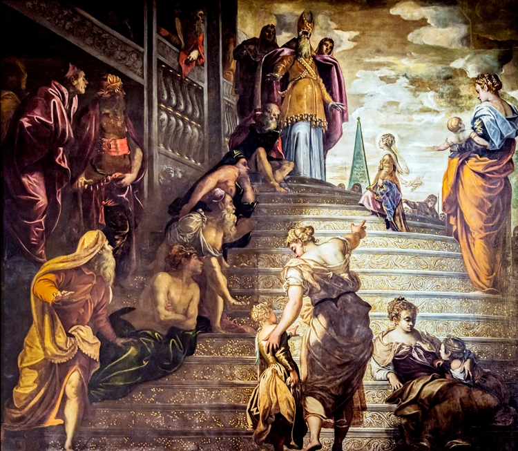 Τα επόμενα 3 χρόνια ασχολείται μ’ ένα κύκλο σκηνών με θέμα, ιστορίες της Παλαιάς Διαθήκης. Το 1564 ζωγραφίζει το έργο “Η Δόξα Του Αγίου Ρόκκο”, για να συμμετάσχει στο διαγωνισμό για τη διακόσμηση του κτιρίου της Μεγάλης Σχολής Του Αγίου Ρόκκο. Κερδίζει επειδή προφταίνει να εγκαταστήσει τον πίνακα στο χώρο, πριν βγει η απόφαση της κριτικής επιτροπής.